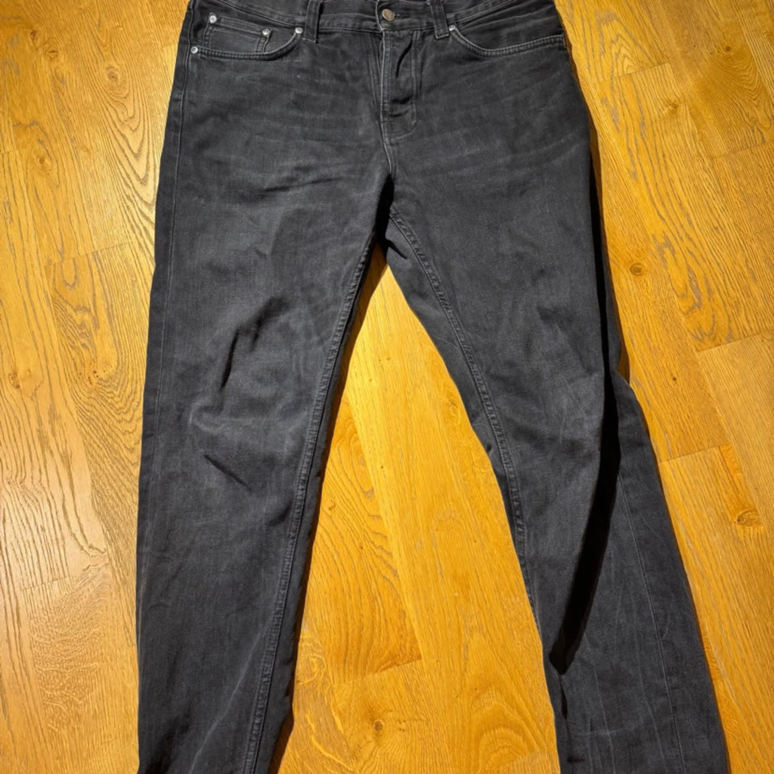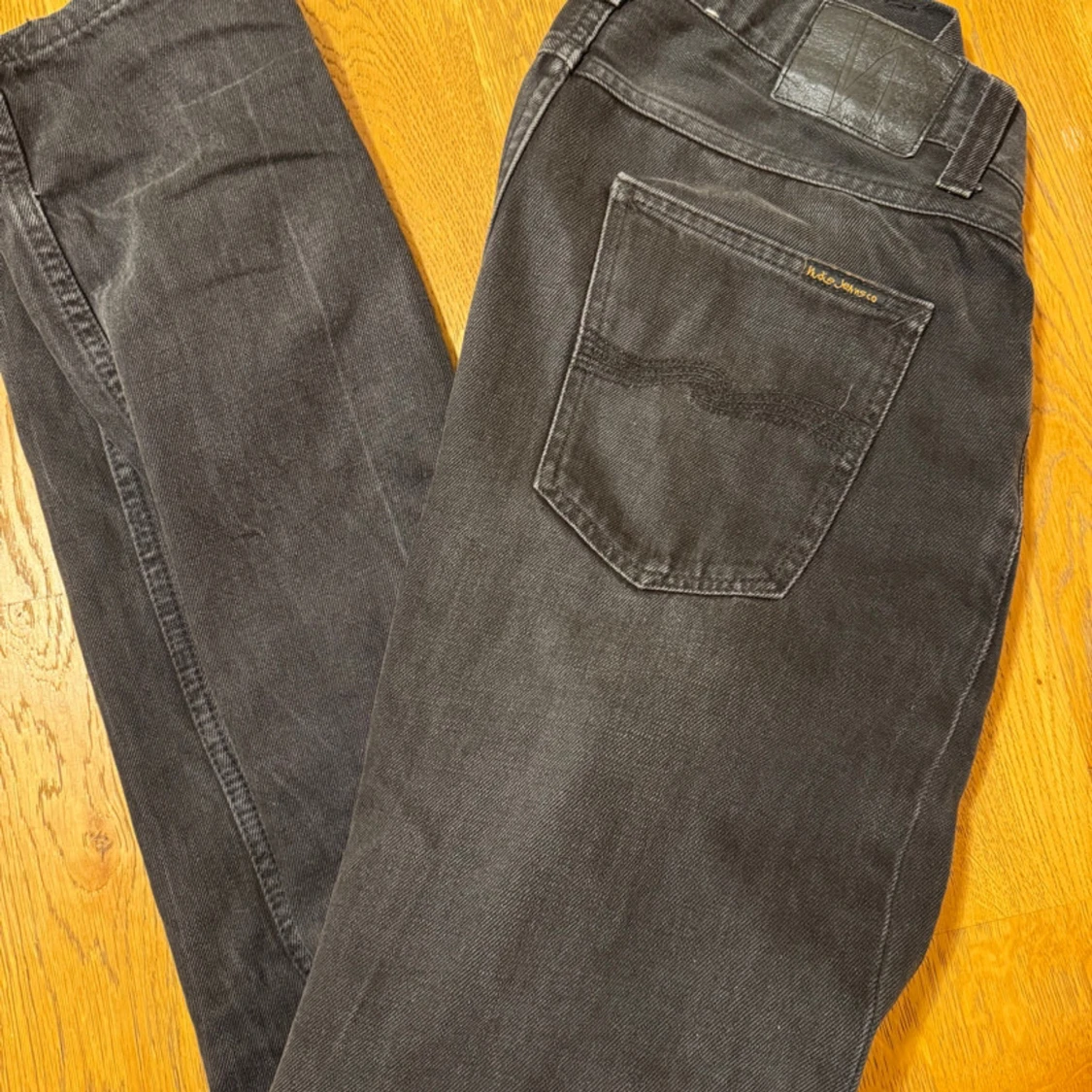 Snygga mörkgråa jeans från Nudie Jeans med klassisk femficksdesign och subtila broderade detaljer på bakfickorna. Perfekta för en stilren look. Steady Eddie II