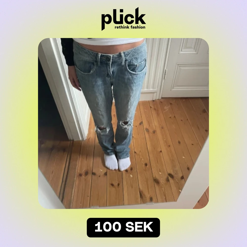 Säljer dessa baggy jeans med låg midja då de är förstora för mig. Köpte dom här på Plick för 250 kr men har ej kommit till användning. (Stod att de va bootcut men skulle säga att de är mer baggy) Hör av dig för fler bilder.