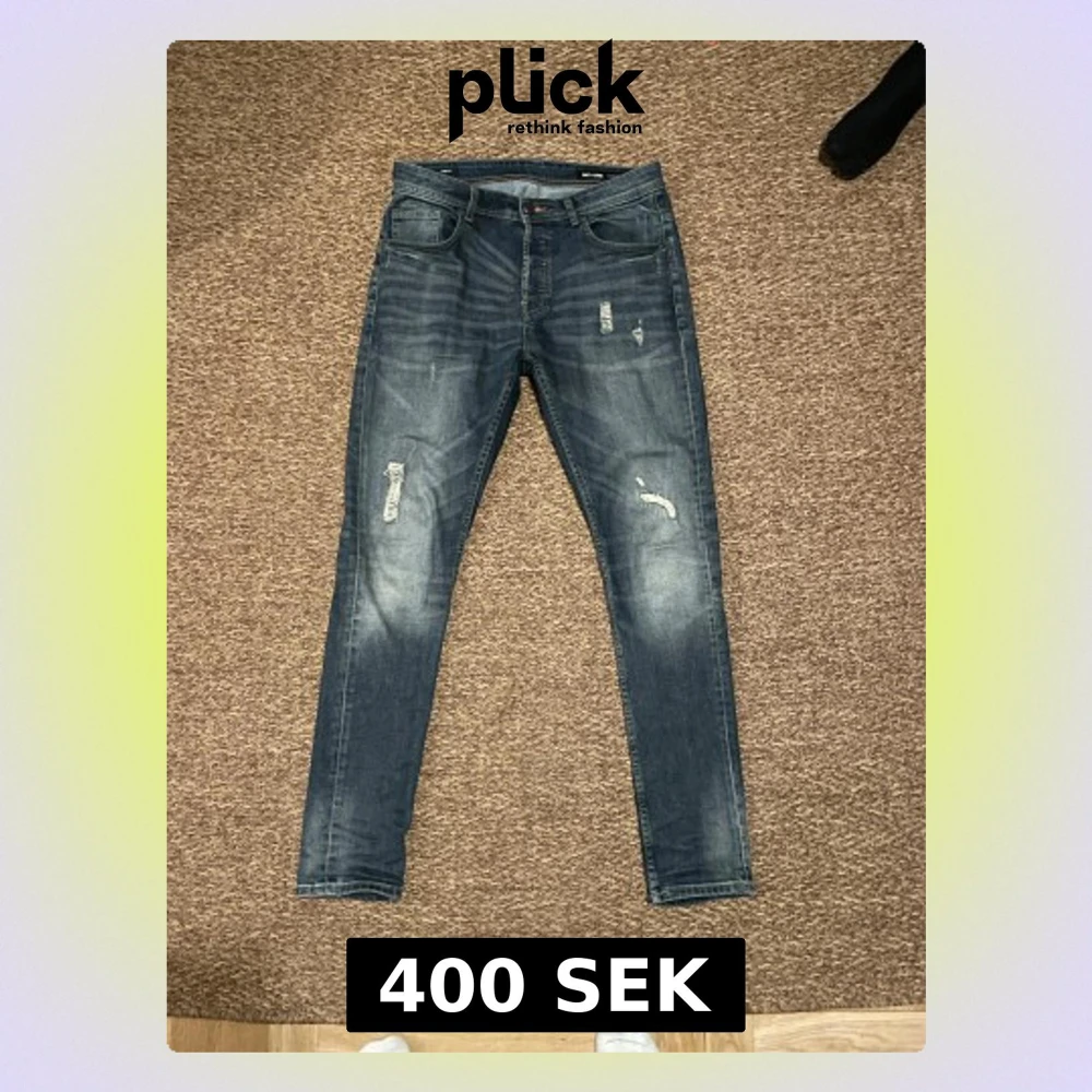 Snygga blå jeans från Only & Sons med skinny passform och slitna detaljer på framsidan. Jeansen har klassisk femficksdesign, normal midja och är tillverkade i stretchigt denim för skön komfort. Perfekt för dig som gillar en unik design.