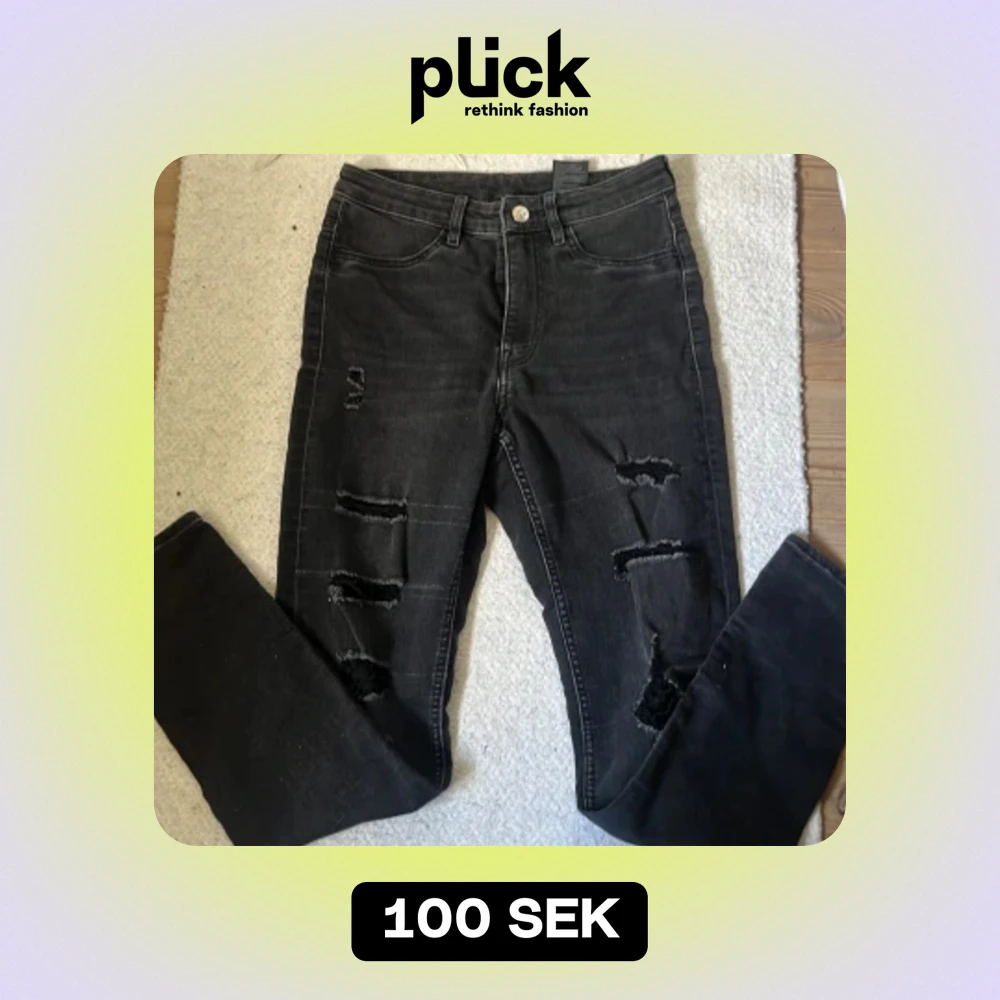 Ett par svarta jeans med hål som inte är använda på länge då jag växt ur dom. Priset kan diskuteras. Obs köparen betalar för frakten.