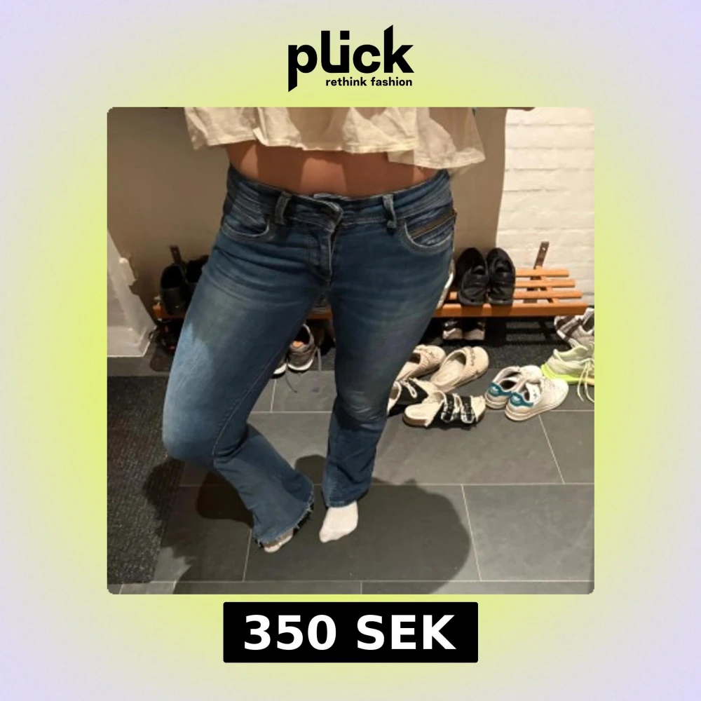 Supercoola lågmidjade jeans. Omsydda längst ner så de är bootcut. Passar mig som har stl 34/36 men är lite insydda i midjan