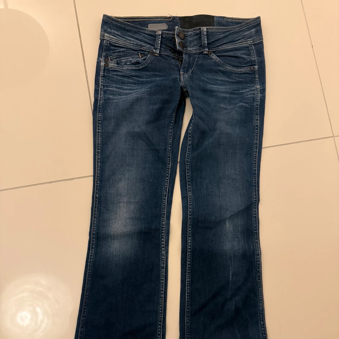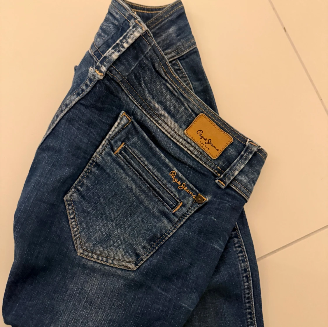 Super lågmidjade jeans från pepe jeans! Storlek 36/ mindre 38! Midjehöjden är 16cm, midjan är 39cm och innerbenslängden är 85 cm🩷😇