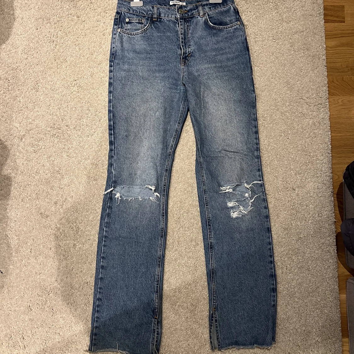 Jeans från Pull&Bear med slits i storlek 40. Små i storleken, skulle säga att de är mer som en 38! Kan både posta och mötas upp och kan även skicka fler bilder om det önskas! Nypris 400