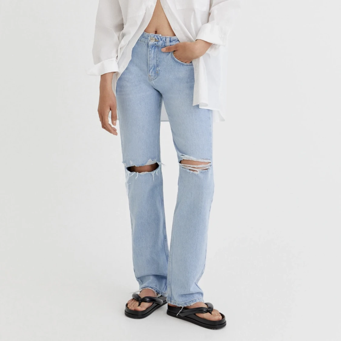 Säljer dessa blåa mid Rise straight. Från pull and bear.