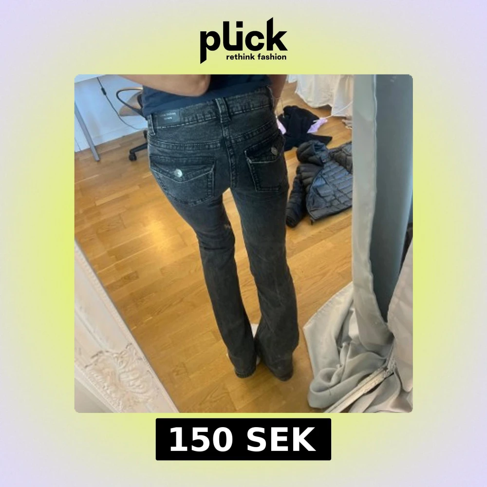 Jeans från Gina y2k modell, säljer då de ej kommer till användning o de e i bra skick 💞 storlek 32 o går ner t golvet på mig som har 80cm isch i innerben
