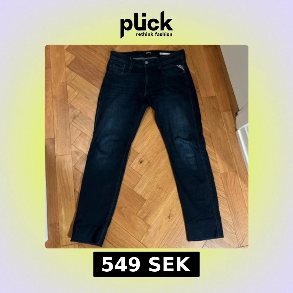 Snygga mörkblå jeans från Replay med dragkedja och knappstängning. Klassisk femficksdesign och en stilren look som passar perfekt till vardags. Märkesdetaljer på bakfickan ger en extra touch.