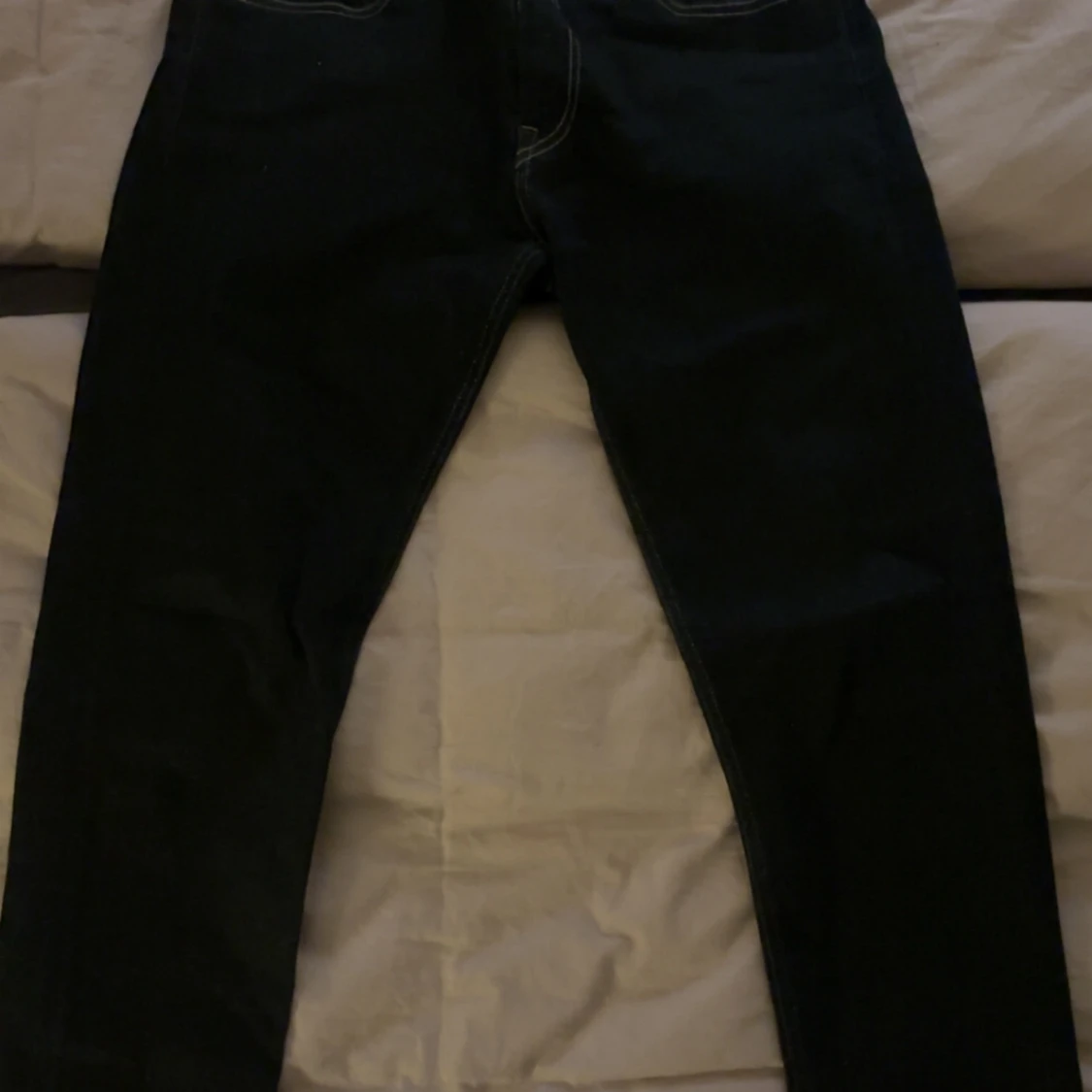 Säljer ett par Replay Grover jeans i straight fit med mörkblå tvätt och klassiska kontrastsömmar. Jeansen har fem fickor och tydlig Replay-logga i linningen. Perfekta för dig som gillar en clean och tidlös look.