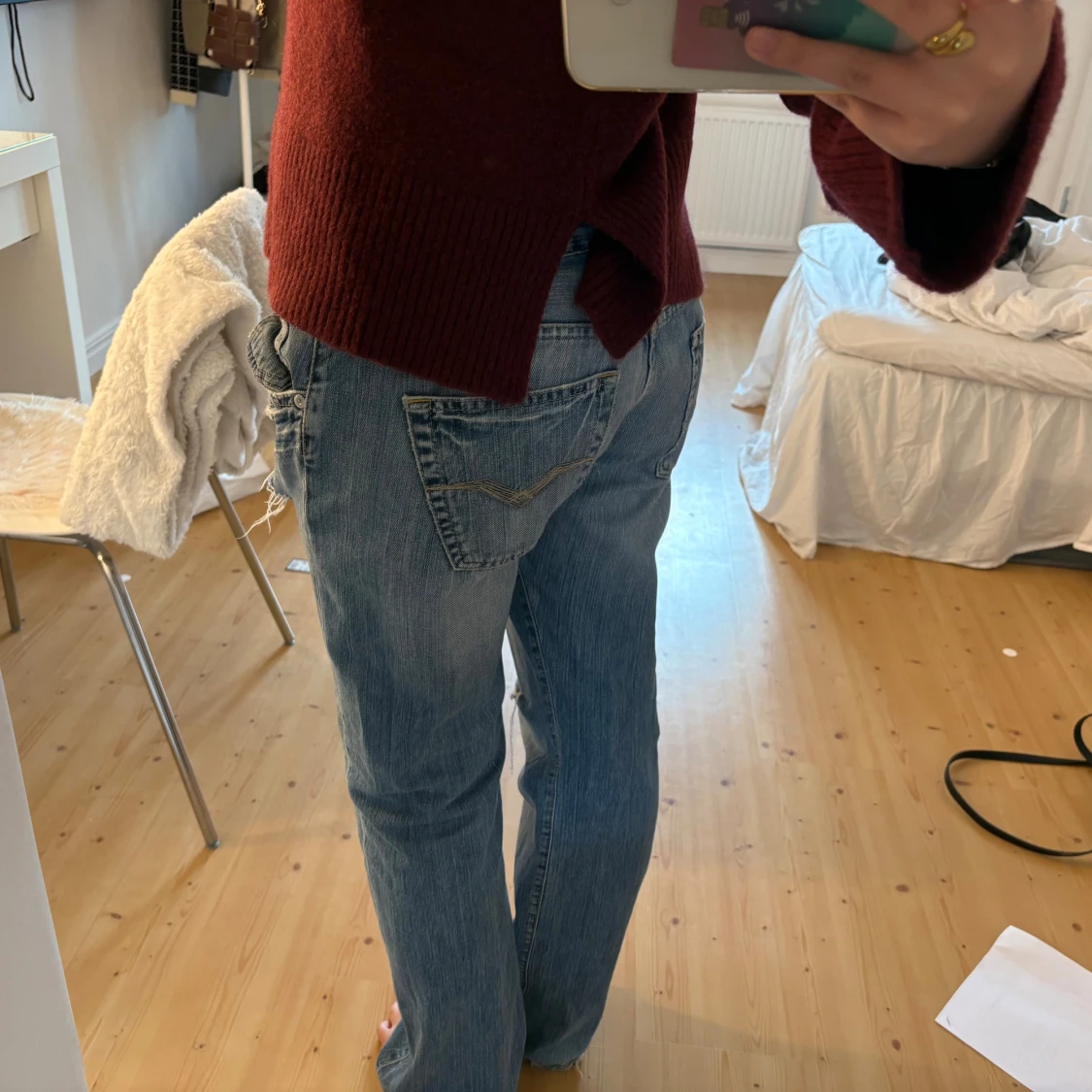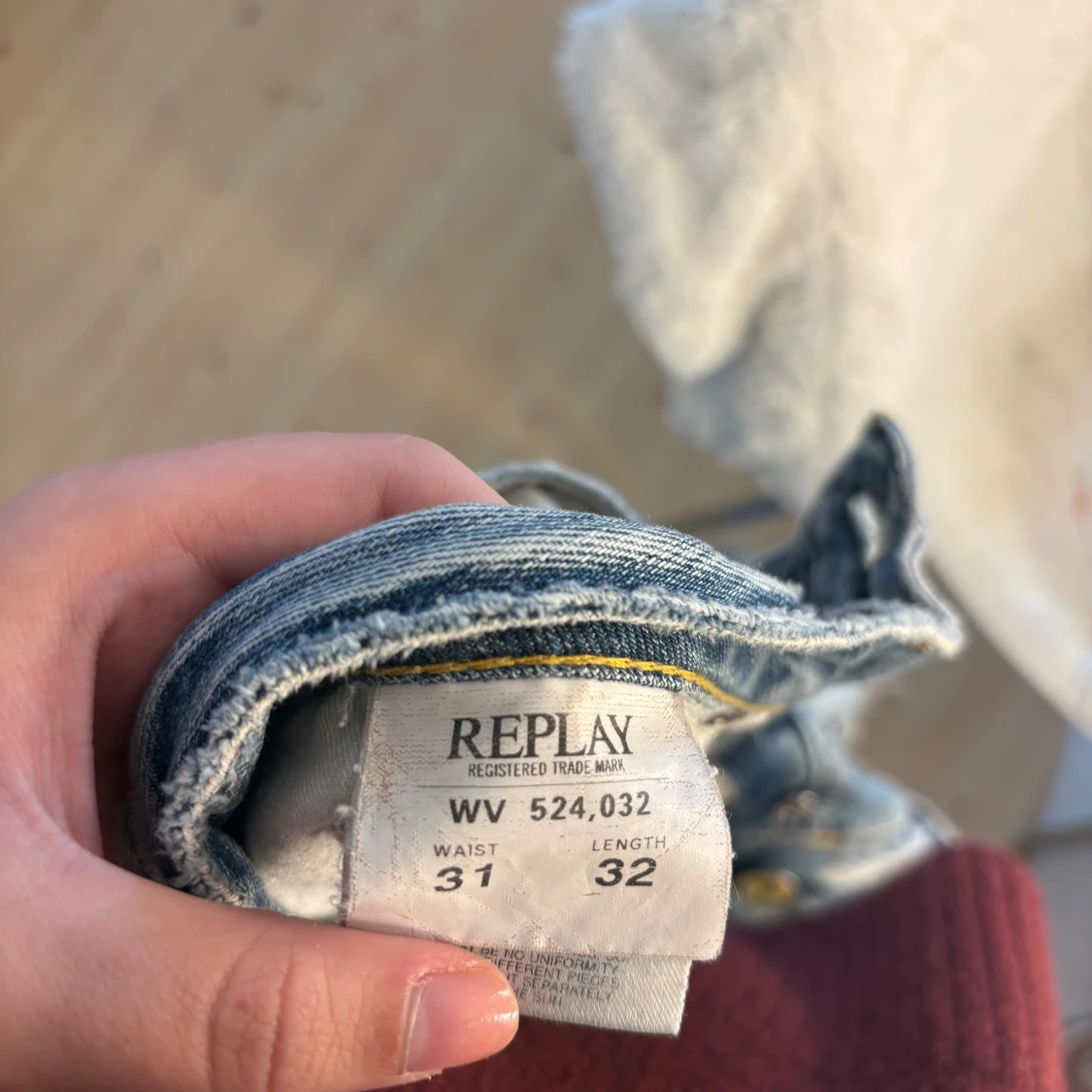 Säljer ett par ljusblå jeans från Replay med snygga slitningar på låren och knäna. De har även slitningar längst ner då man har gått på dem.
