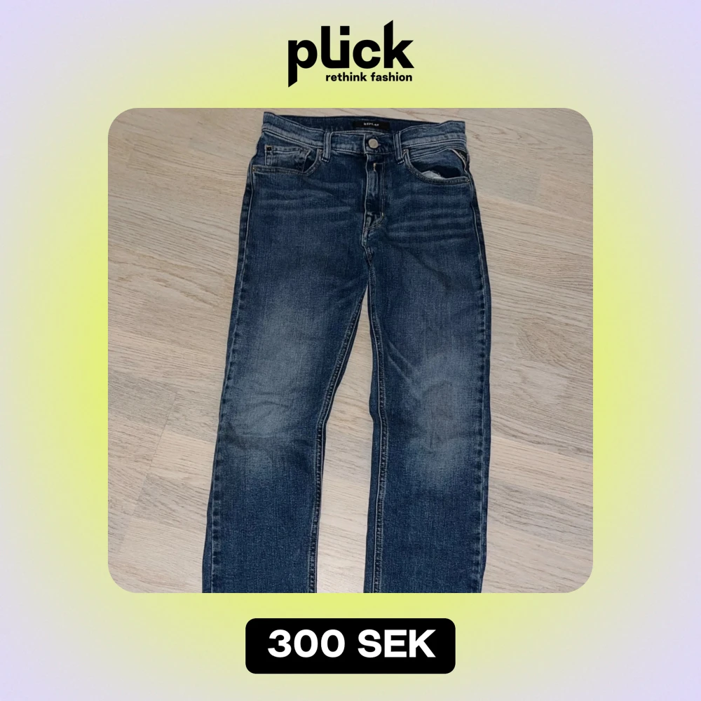 Detta är ett par mörk blåa Replay jeans 12y (150cm) de är i ett bra skick. Köparen betalt frakt.
