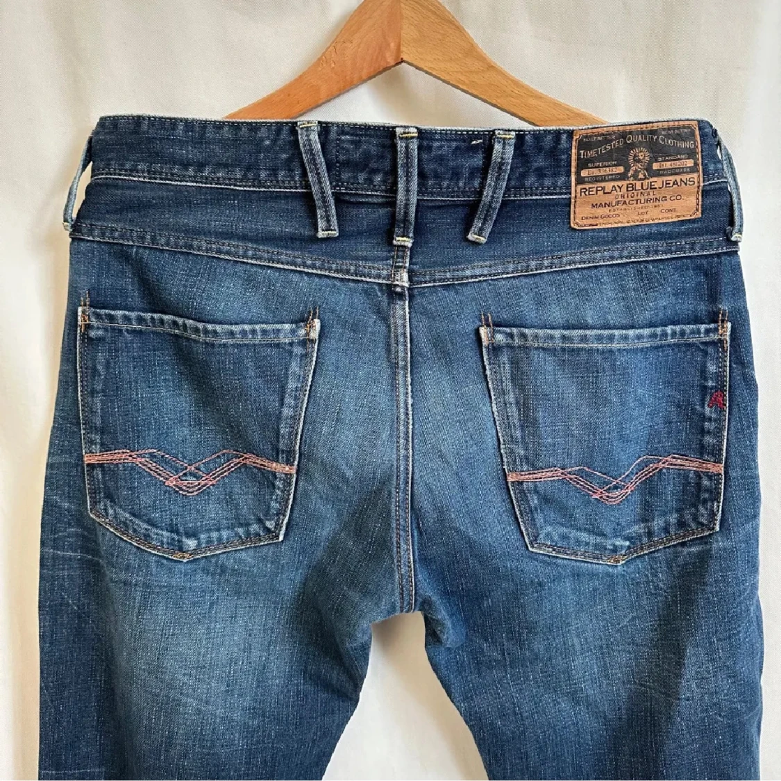 Säljer ett par snygga blå jeans från Replay i bra skick. De har en klassisk femficksdesign med snygga sömmar på bakfickorna. Storlek W31 och L34. Perfekta för vardag och fest! Passar till det mesta och superbekväma.