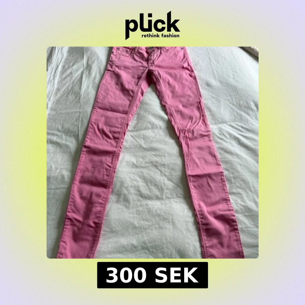 Säljer ett par rosa jeans från Replay. Byxorna har klassisk femficksdesign, dragkedja och knapp framtill samt smal passform. Perfekta för dig som vill sticka ut med färg i vardagen.