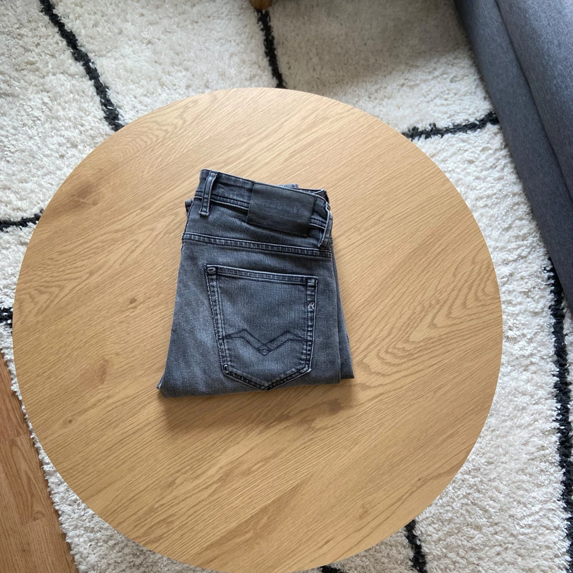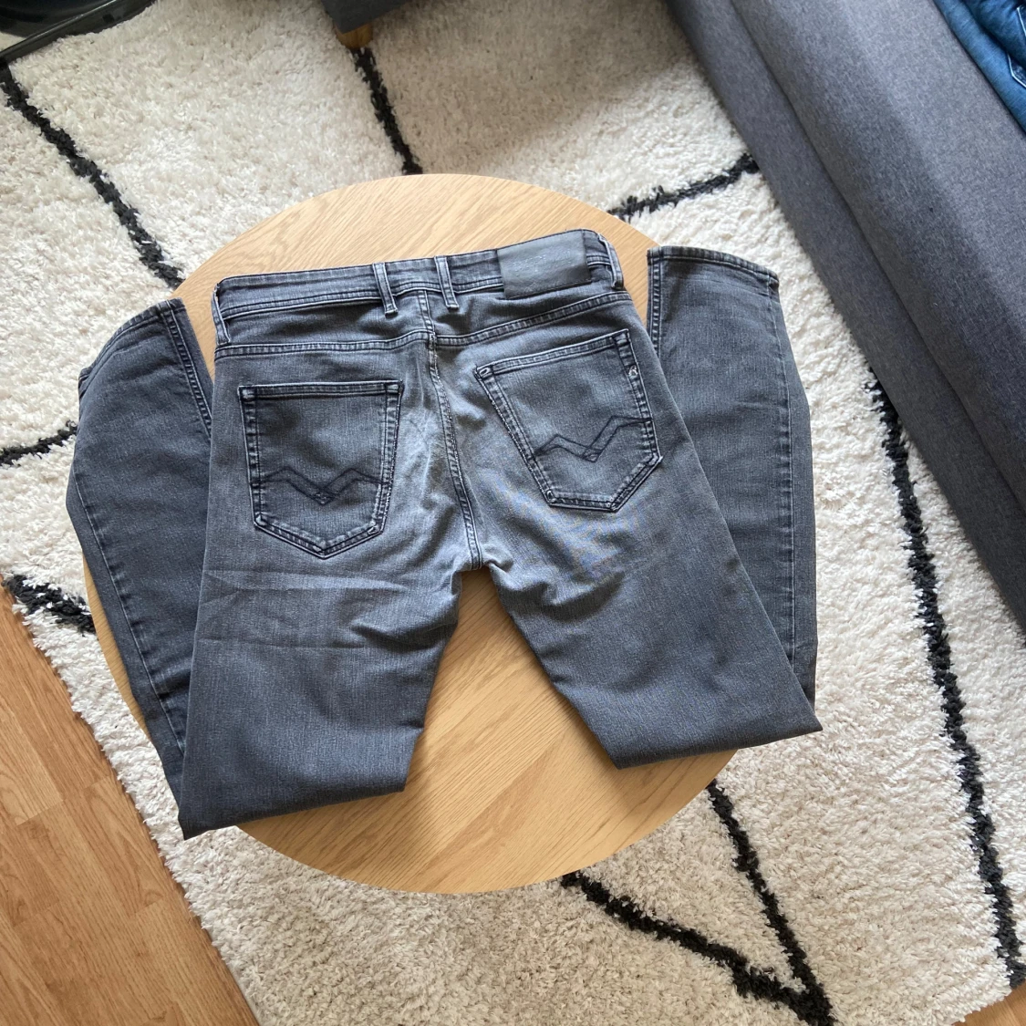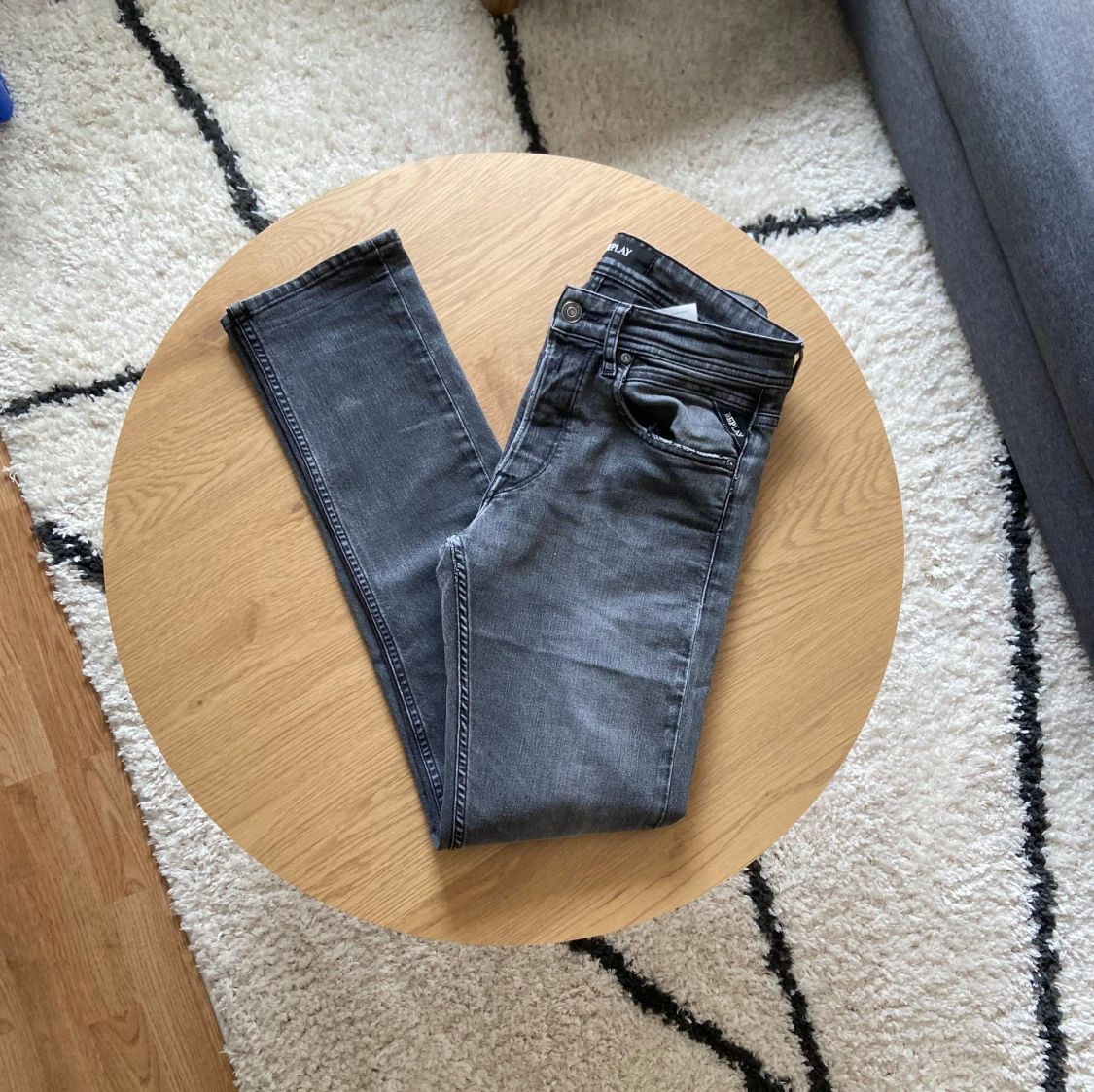 Hallå👋 Säljer ett par gråa jeansbyxor från Replay med klassisk femficksdesign och raka ben👖 Byxorna har normal passform och är tillverkade i ett mjukt denimtyg. Perfekta för en avslappnad stil😮💨 Byxorna har Grover modell! Byxorna har storlek W30 L32📐 Kom privat för mått!📏 Priset är INTE ristat i sten så kom gärna för prisförslag!💸 Vid frågor: Meddela oss!📩