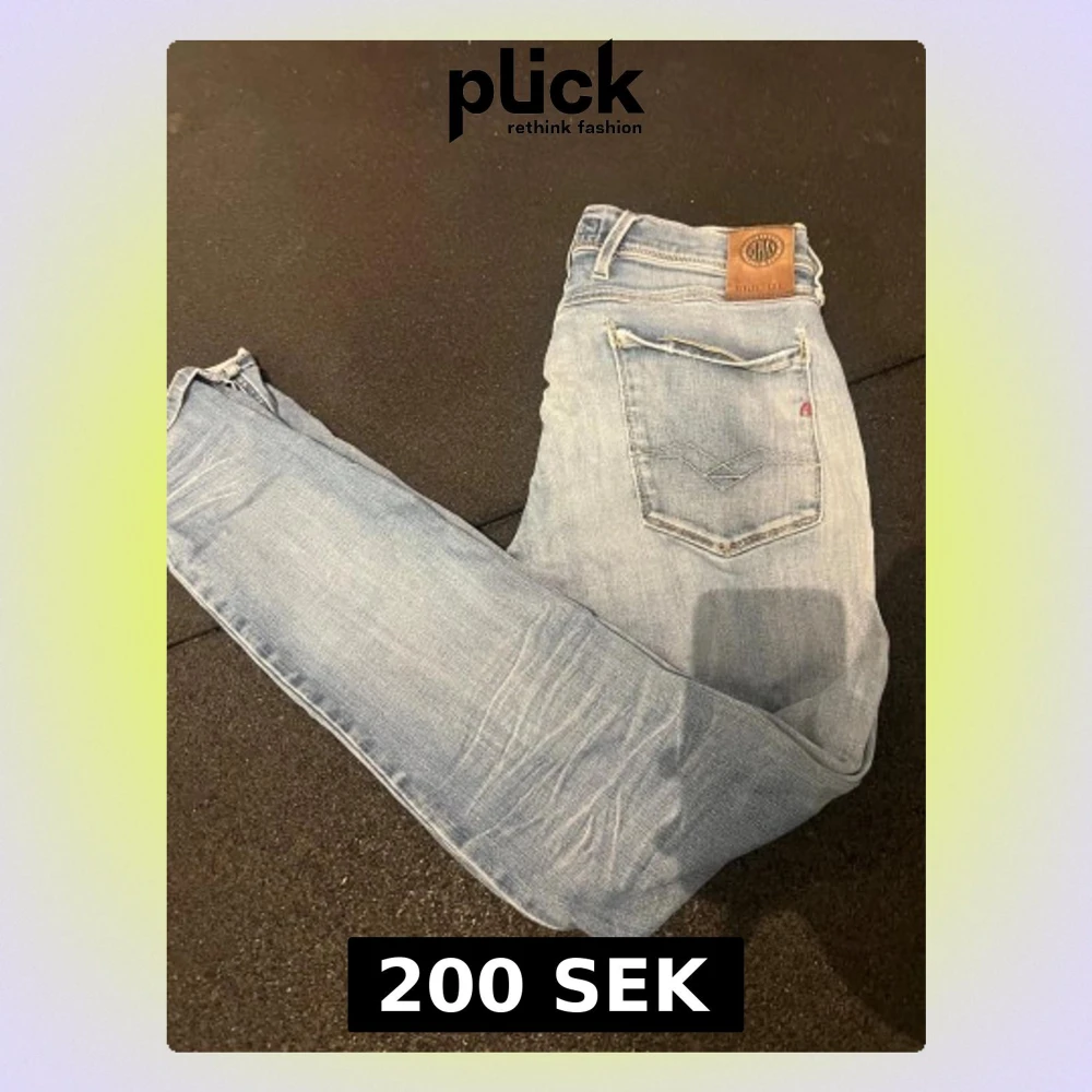 Säljer ett par ljusblå jeans från Replay med klassisk femficksdesign och snygga slitningar. Välanvänd storlek w30 l32. Skickar direkt