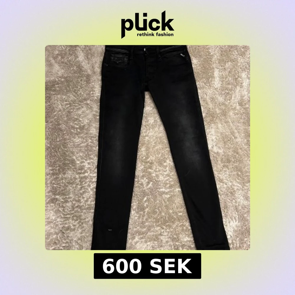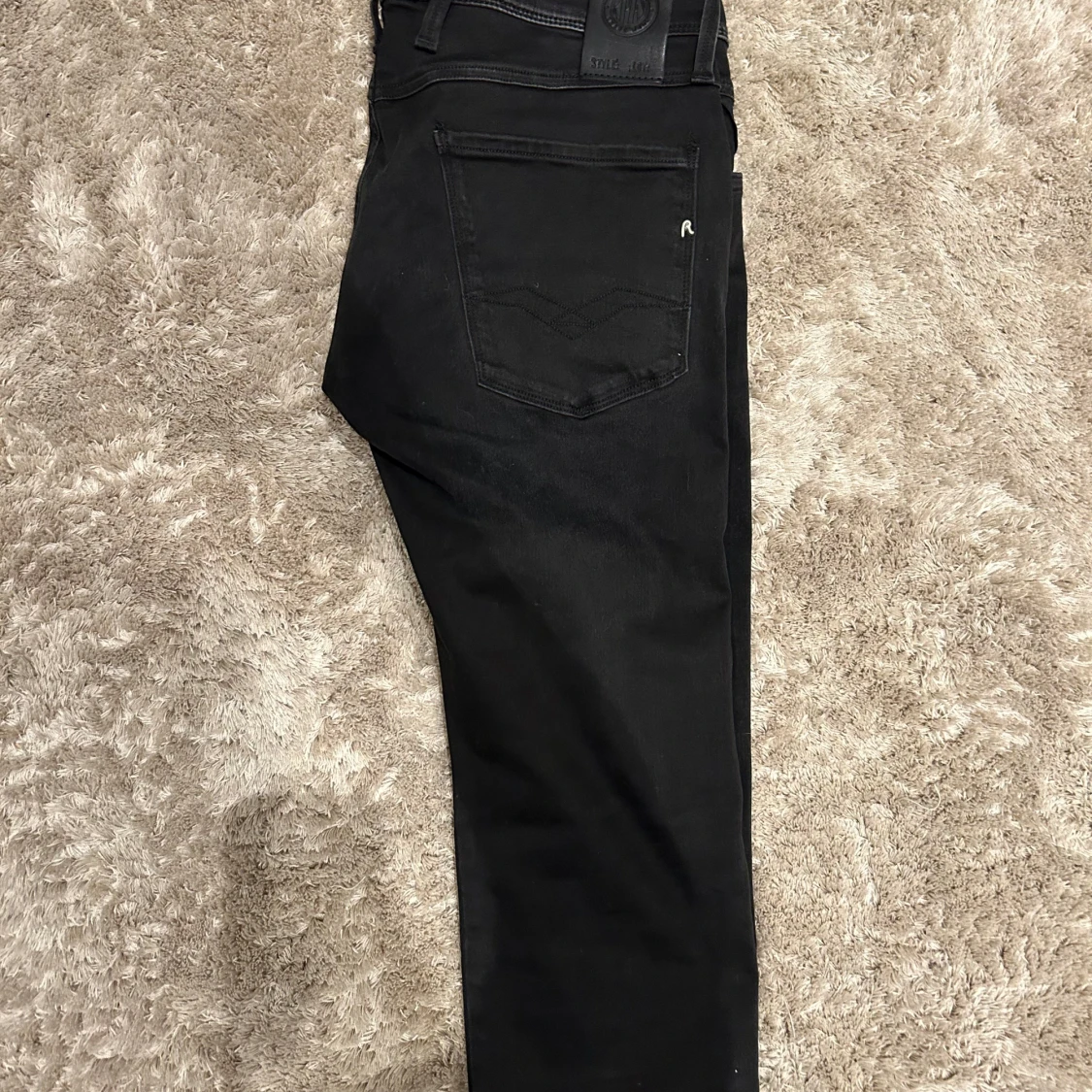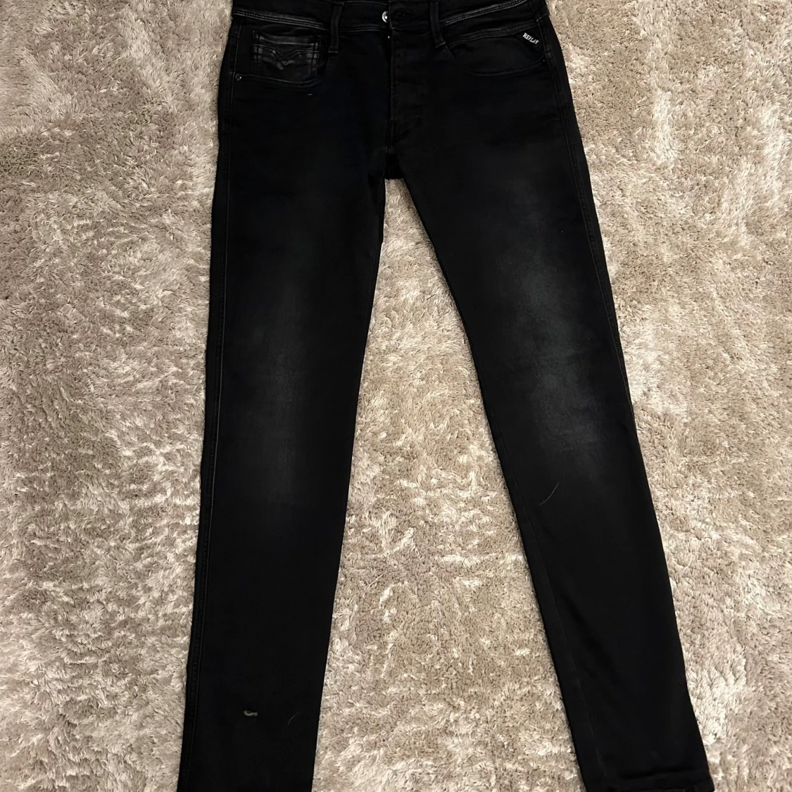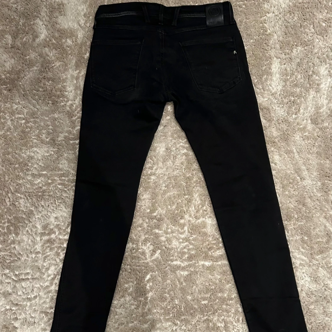 Snygga svarta jeansbyxor med en slim passform. De har en klassisk femficksdesign och dragkedja. Perfekta för en stilren look. W 31. L. 32