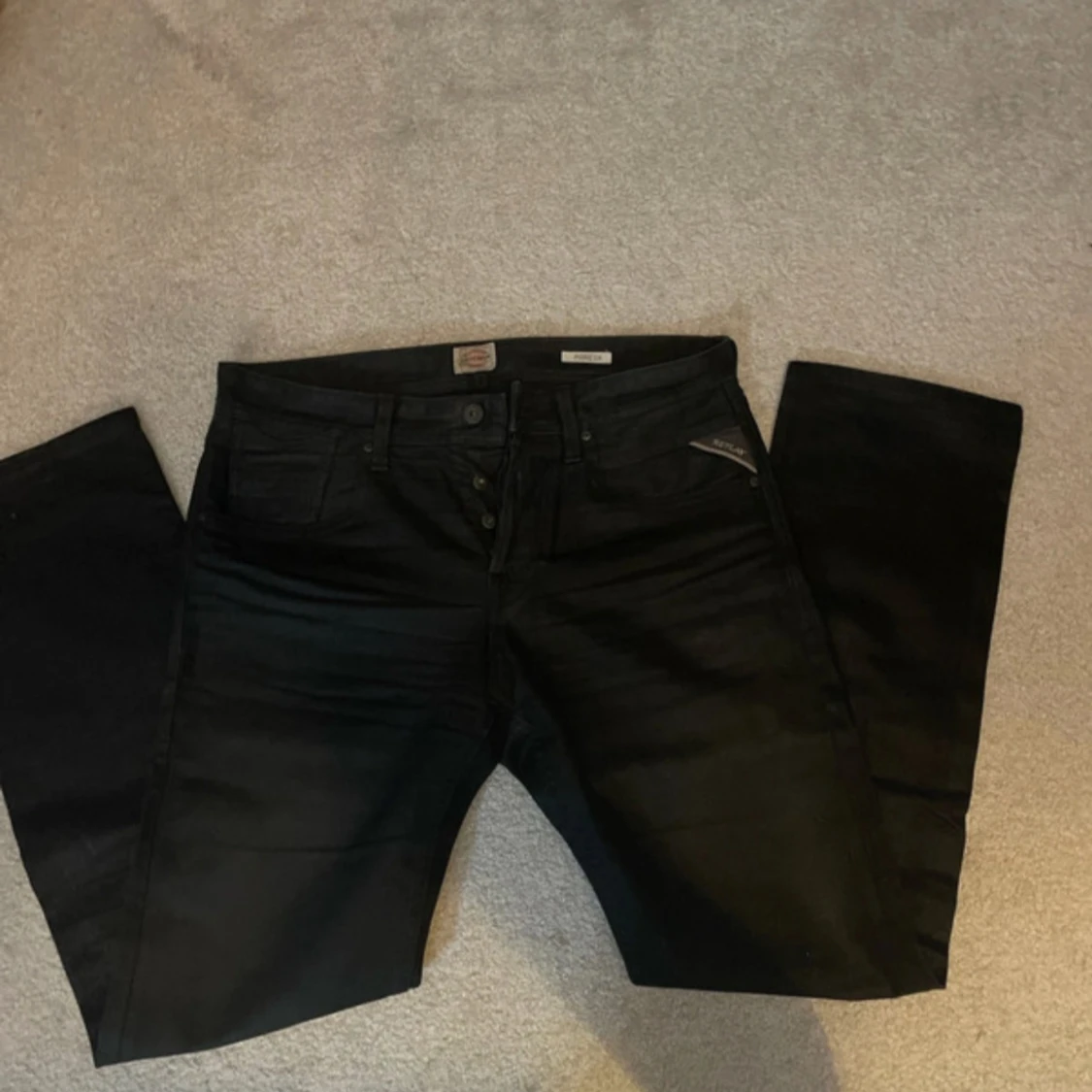 Svart replay jeans i modellen moresk. Storlek 32 lite grön färg vid knapparna se bild 3 men de är inte lika tydligt i vanligt ljus. Priset är diskuterbart