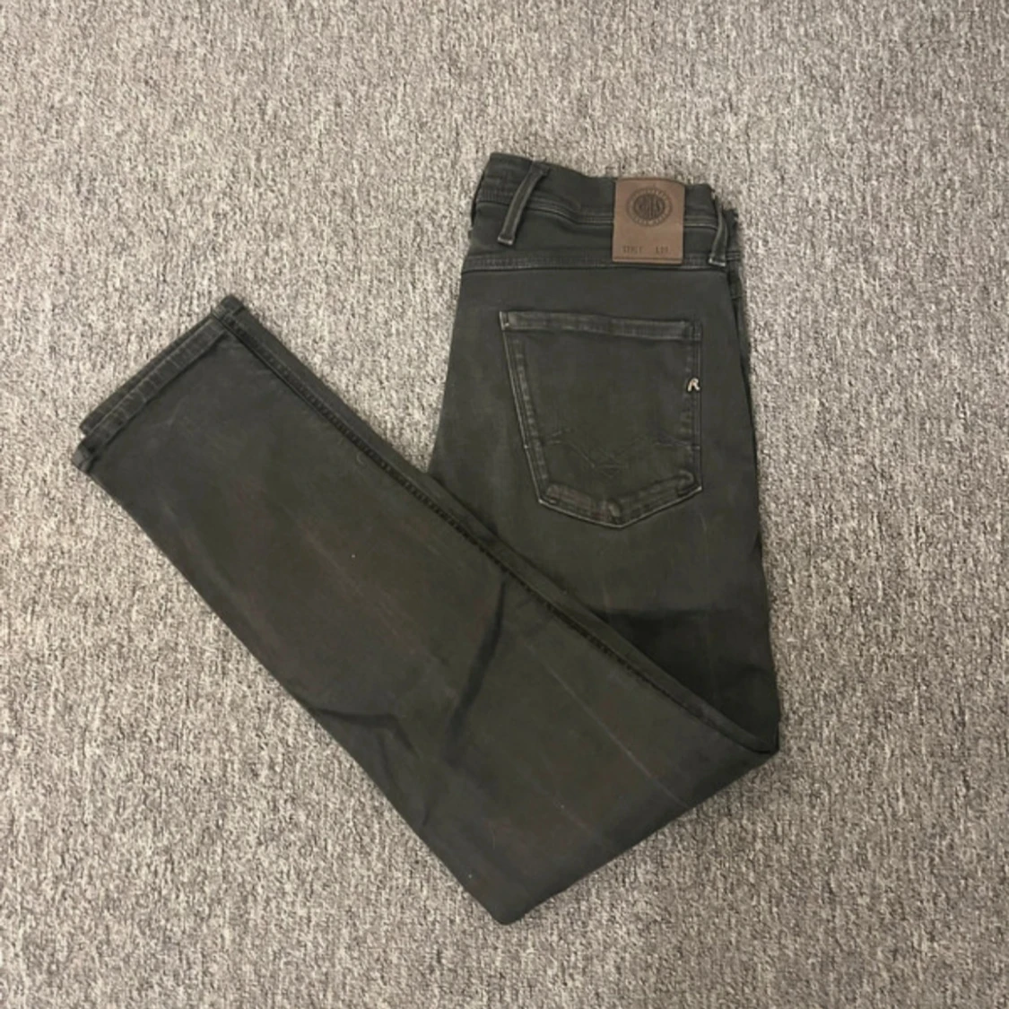 Svarta jeansbyxor från Replay i modellen anbass Klassisk femficksdesign, med Replay-logga på bakfickan och läderpatch i midjan. Jeansen är i stretchigt material för en bekväm passform och har smala ben hela vägen ner. Fråga vid fundering