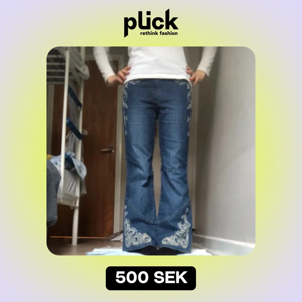 Sjukt snygga jeans med broderi på. Tyget är hyfsat stretchigt och har ett fint ”randigt” mönster vilket ger en mer vintage känsla👌🏼Tveka inte att höra av dig💕