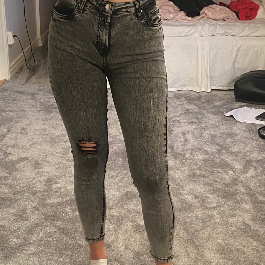 Grå skinny jeans i storlek 36! 80kr plus frakt💟