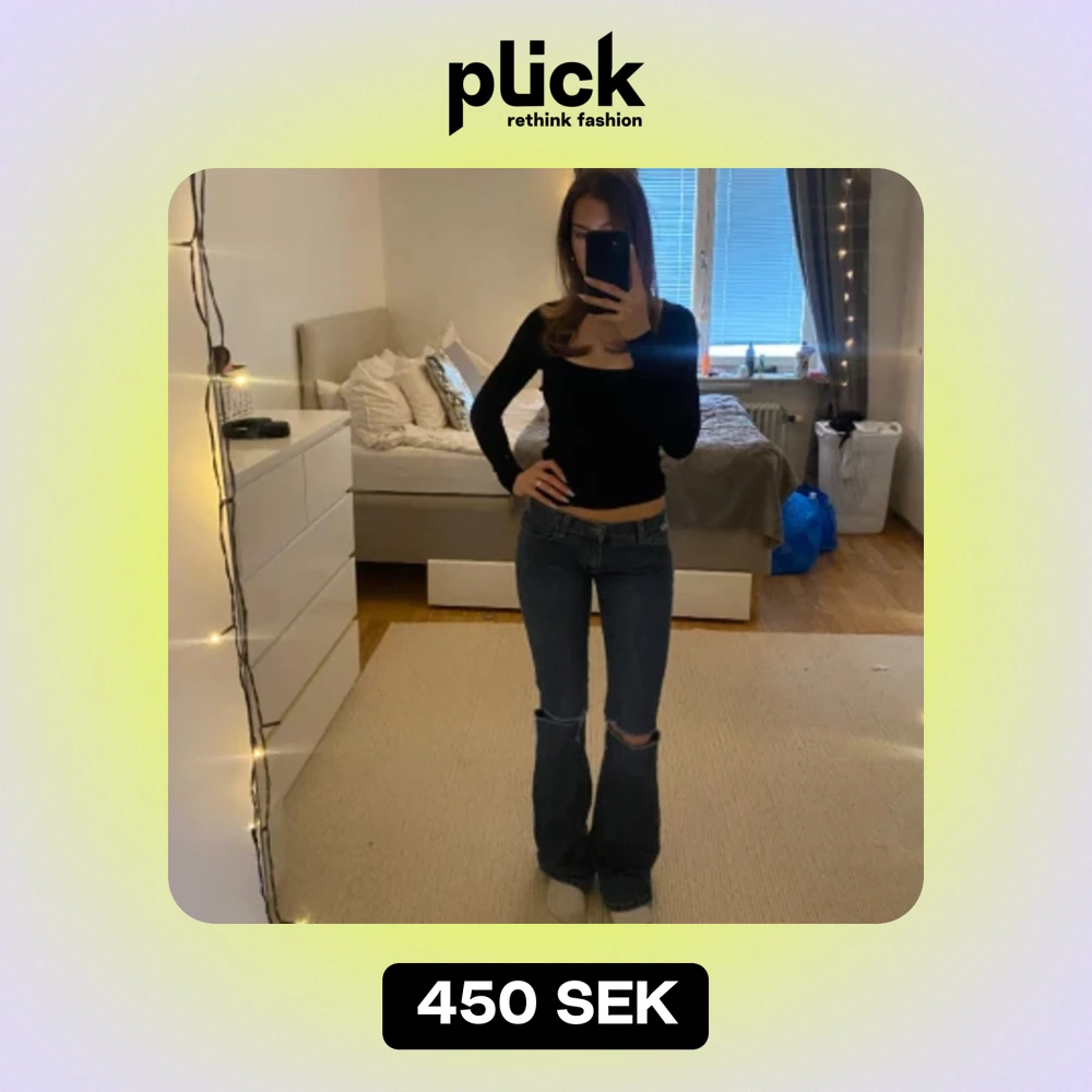 Så snygga jeans som tyvärr är för långa för mig, sitter snyggt med låg midja. hål på knäna, jag tror ägaren innan gjort själv & lite slitningar längst ned men inget som stör! har fler jeans som jag säljer, kolla profil 😇 Midja=74 Inne=83 Ytter=107