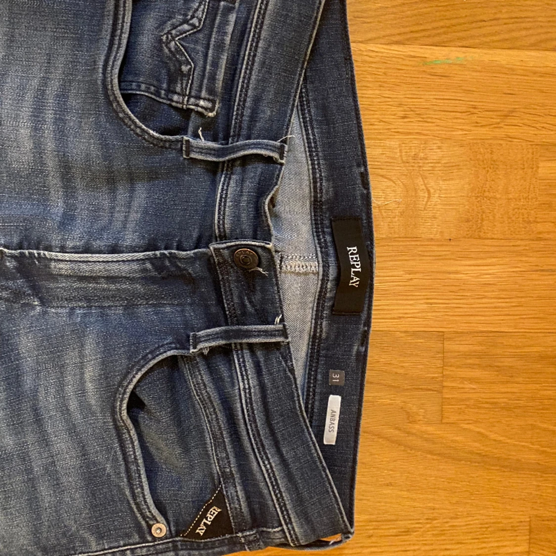 Fina Replay anbass i storlek w31 l32. Finns ett gammalt hål som är ihop sytt snyggt av en skräddare syns på bild 3. men annars jätte fint skick. Priset kan diskuteras. ny pris 1500kr