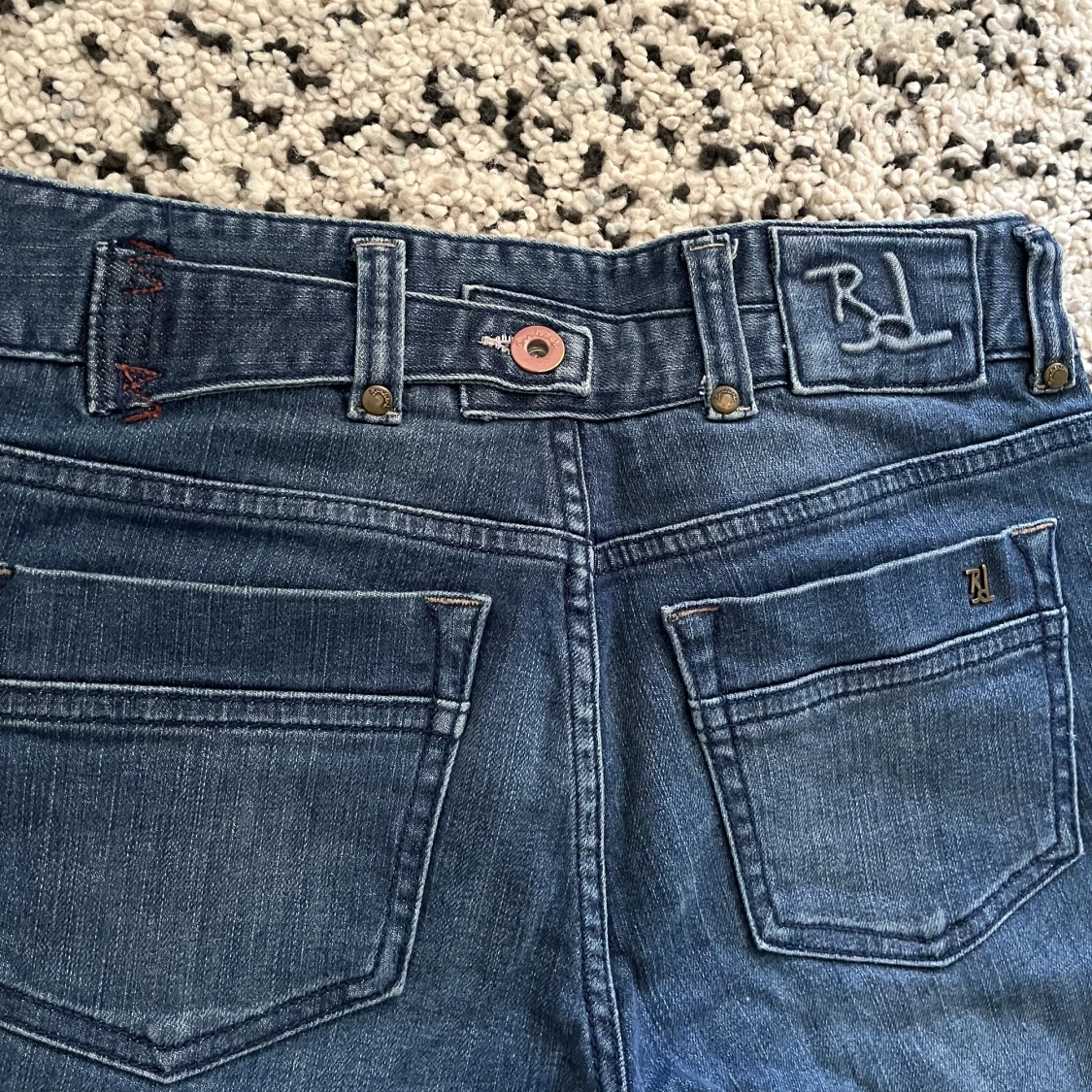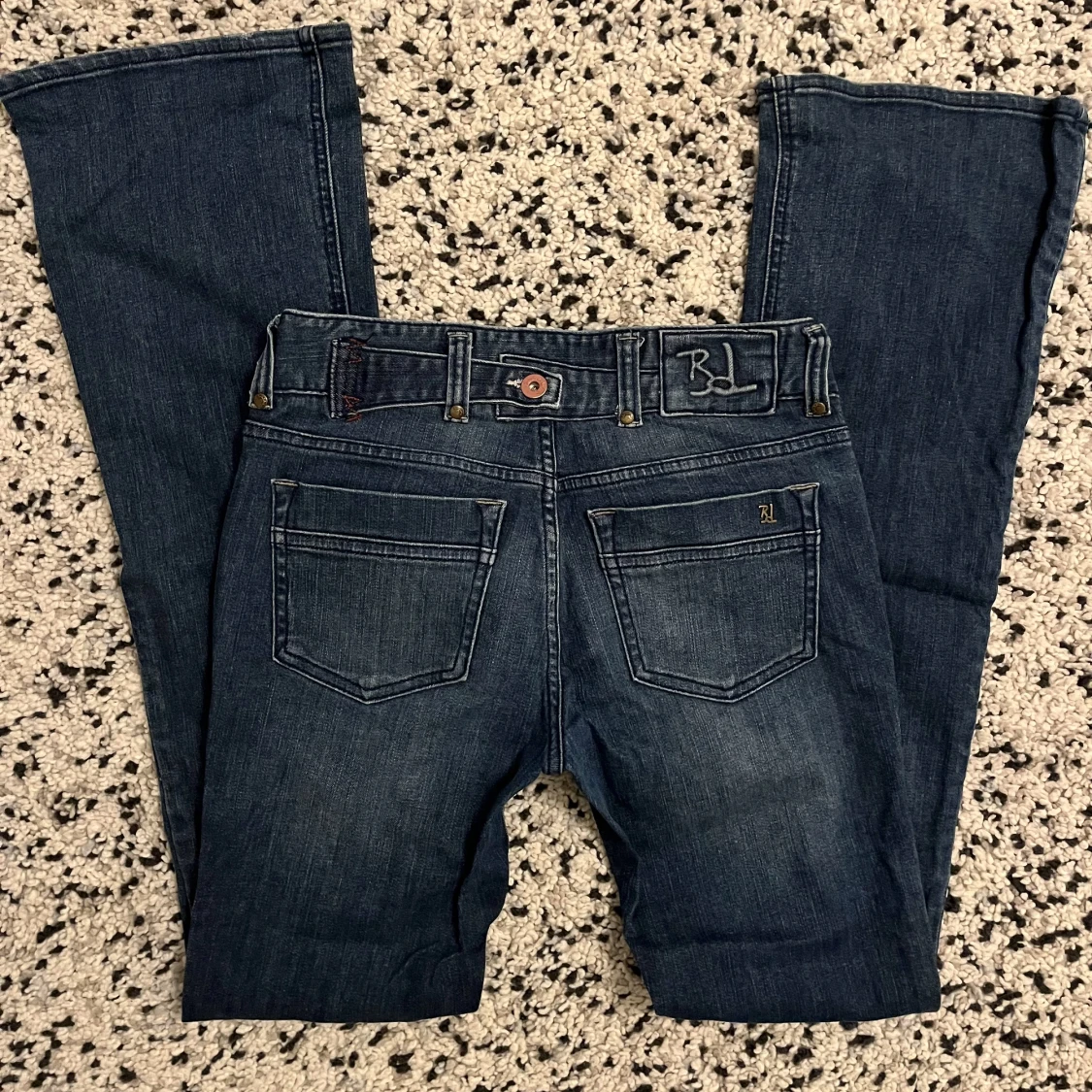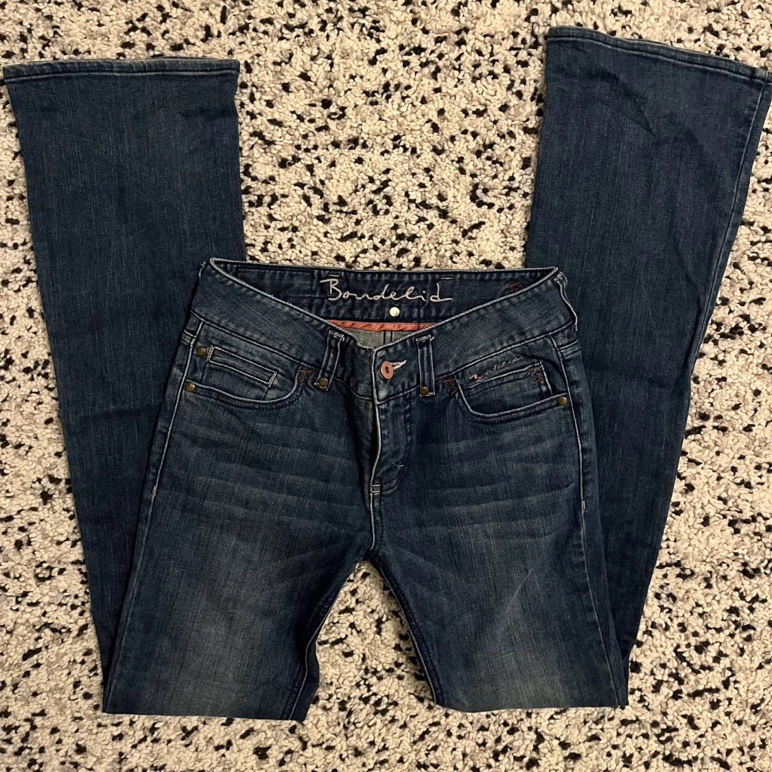 Lågmidjade bootcut jeans i blå 🔥 Långa jeans, är 175cm och bra i längd men tyvärr för små :( De är lite ljusare blå i verkligheten(bild 3). Mått: Midjemått - 75cm Innerbenslängd - 85cm Ytterbenslängd - 106