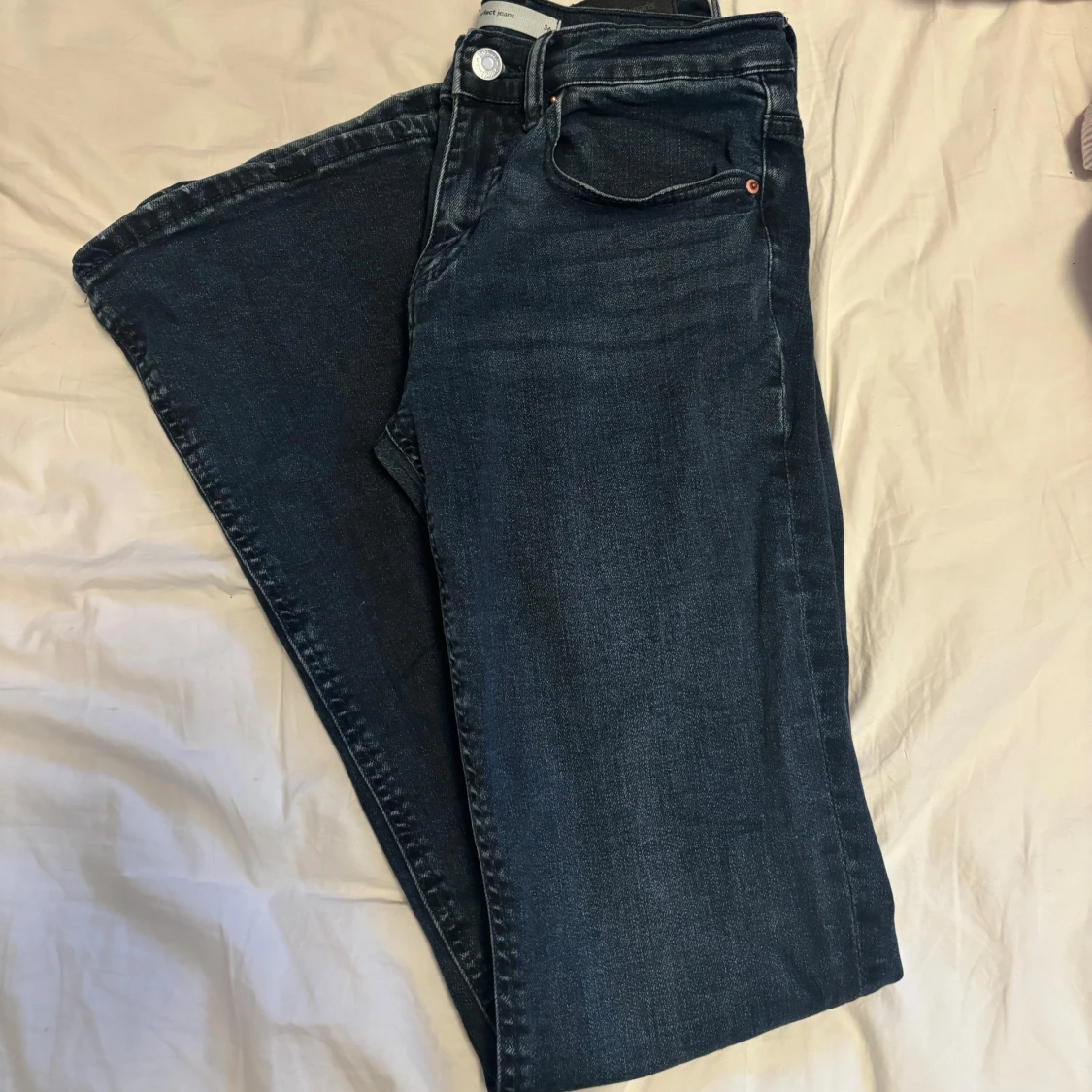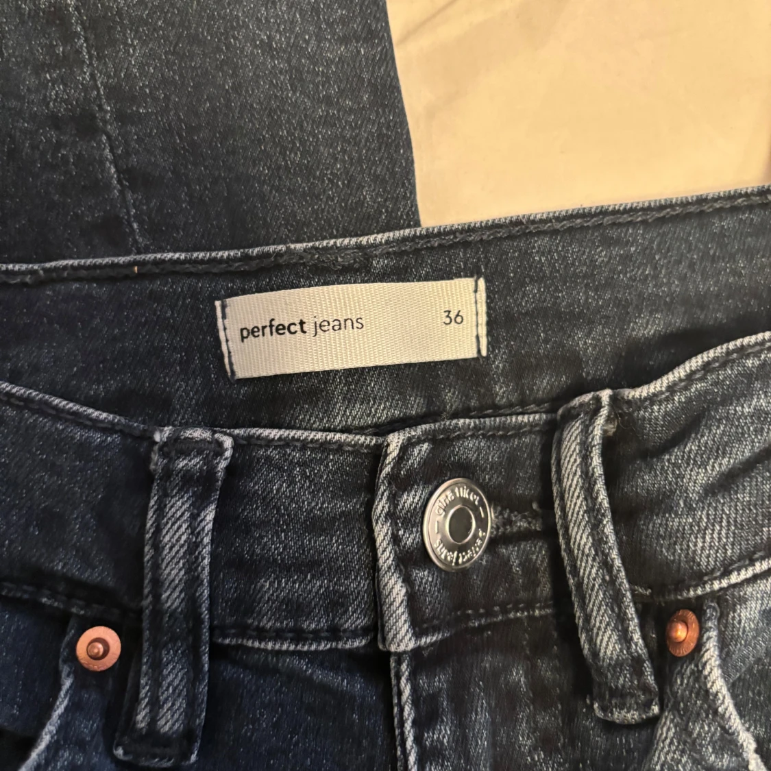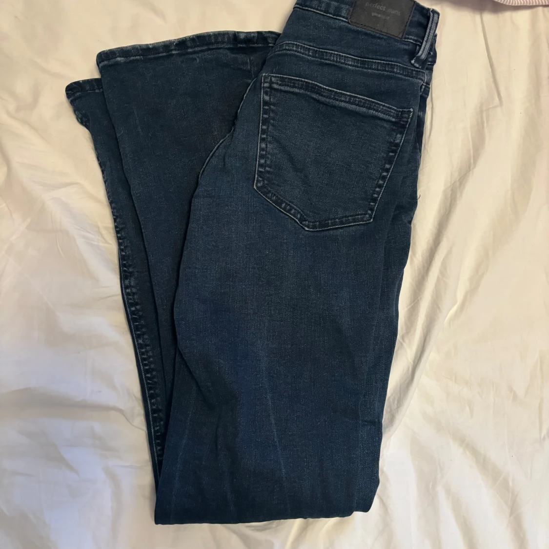Snygga mörkblåa jeans från Gina tricot använd få tals gånger, säljer då dom är förstora för mig. Det är bara att skriva om ni har frågor💕