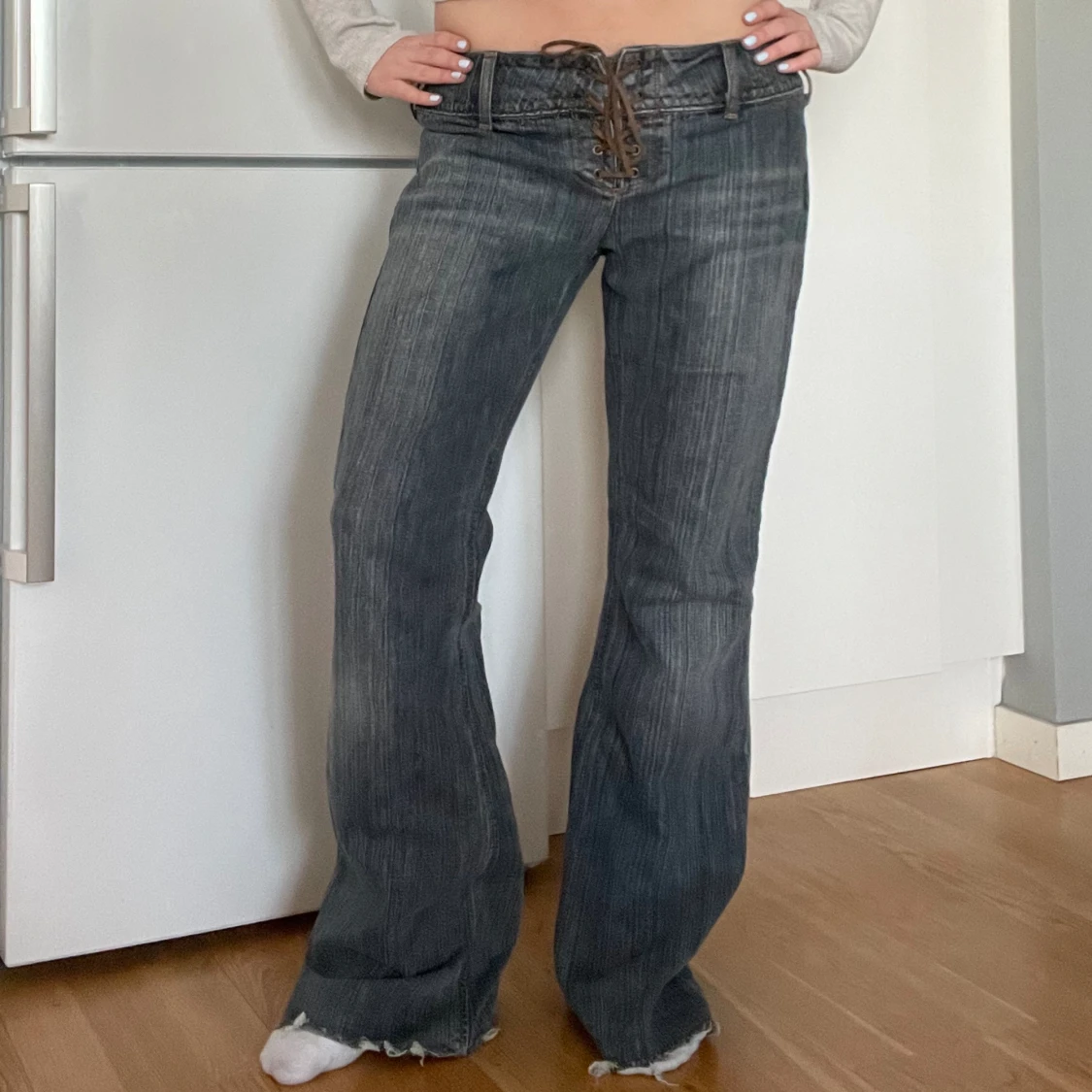 Såå snygga jeans men knytning😍😍midjemått 43cm innerbensmått 76cm