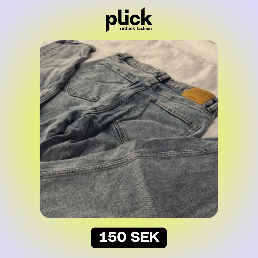 Blåa mom jeans, slim, vet ej vart dom är köpt men märket är stradivarius. Strl. 40. Lite stretch, dragkedja och knapp. Använt max 2 gånger.