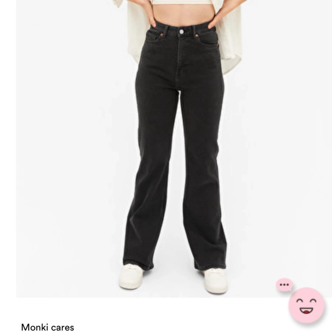 Svarta flare jeans ifrån Monki. Bara använt några få gånger, säljer pågrund av att jag aldrig använder de💜