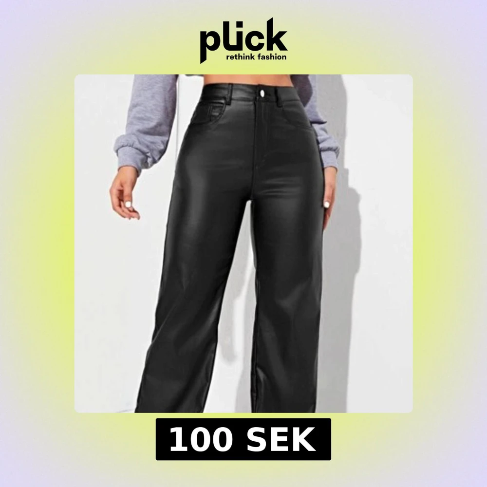 Snygga svarta skinnbyxor med raka ben, formar verkligen kroppen så snyggt😍storlek XS men passar även S.