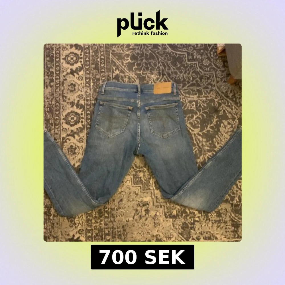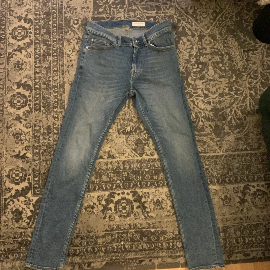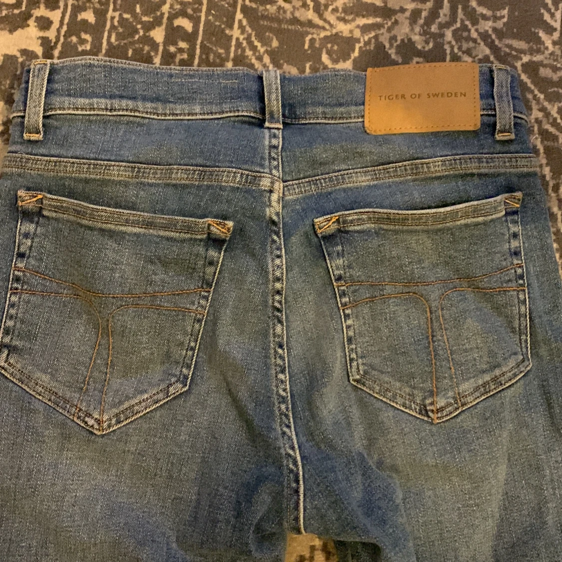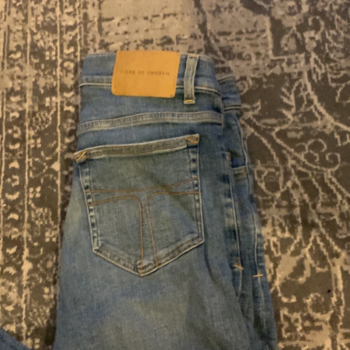 Säljer ett par blå jeans från Tiger of Sweden, modell Evolve i färgen Victory blue eller ljus blå. Tillverkade i jeansmaterial med snygga detaljer. Perfekta för en stilren och modern look. Bara Använda en gång på grund av att dem var för små. Köpte dem för 1499 så tänker att lite mindre än halva pris är en riktigt bra deal.