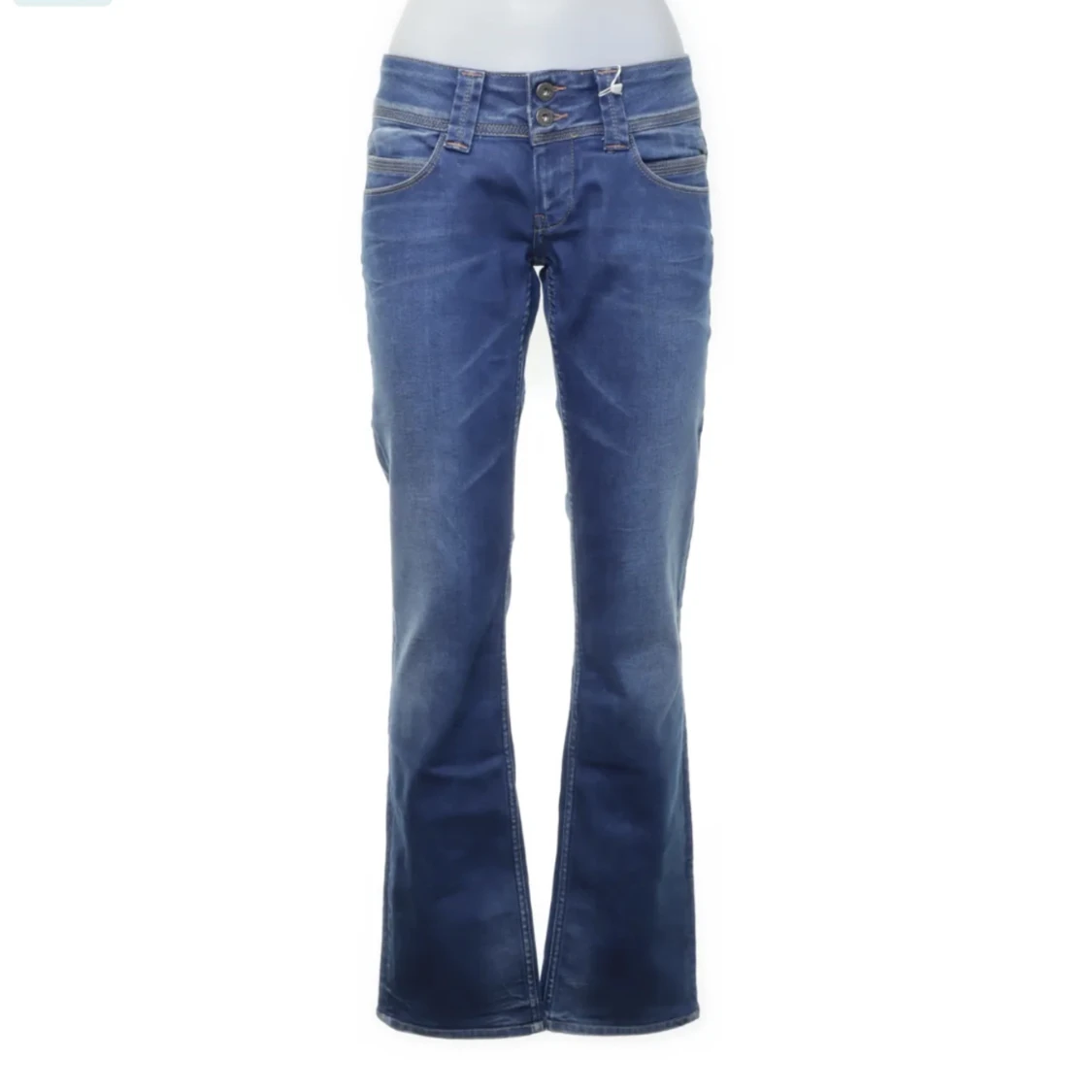 blåa jeans pepe storlek 28/34 men skulle säga lite mindre som en 27. lågmidja och rak modell, slutsålda! köp inom 5 dagar annars skickar jag in de på sellpy!💗
