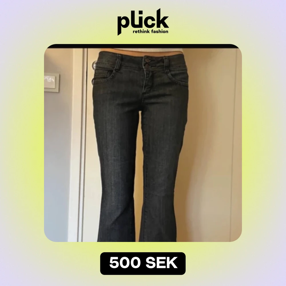 Säljer dessa skitsnygga Low waist Bootcut jeansen köpta second hand❤️ i strl S, innerbenslängd ca 81 cm och midjan rakt över 38cm