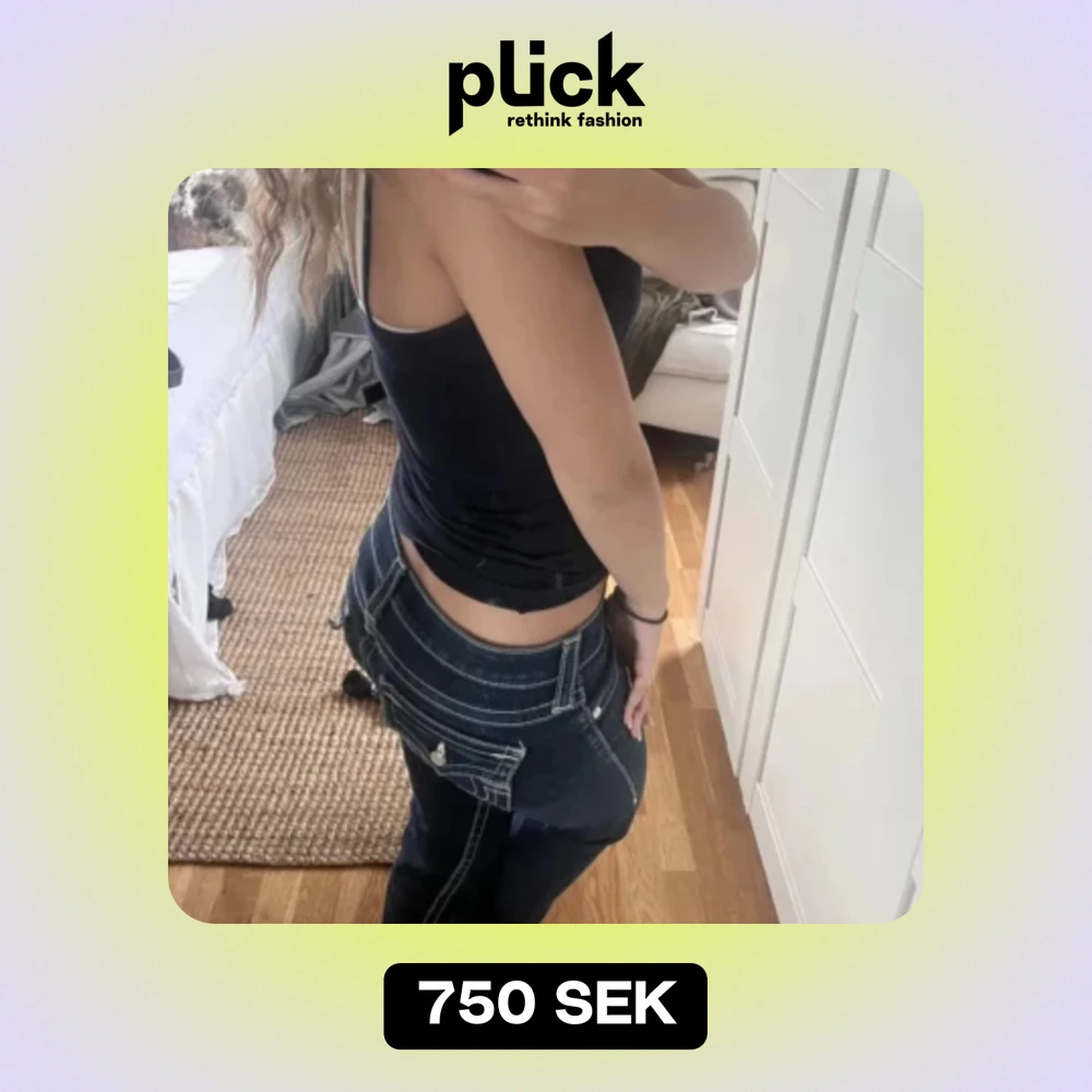 säljer dessa true religion jeans då de börjar bli för små💓säljer dyrt för att de är i så pass bra skick🙏 jag är 167 och de skulle passa någon som är typ 165 och under💓de är bootcut och har små glitter detaljer 💓skriv för fler bilder