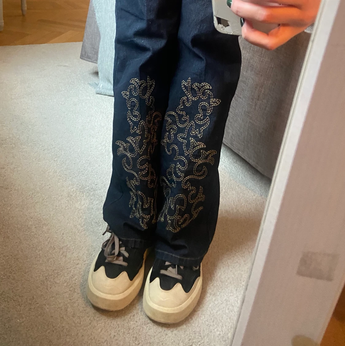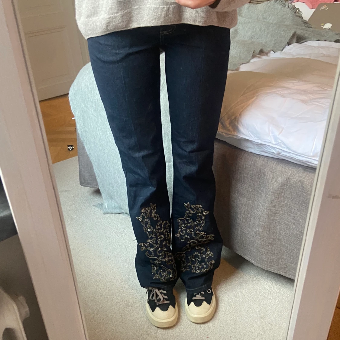 Super coola jenas med broderi i bootcut modell. Jeansen är från More&More och är i storlek 36. Långa i modellen, jag är 167 cm lång. Medelhöga i midjan. Inga defekter.❣️Köparen står för frakten❣️BUDGIVNING