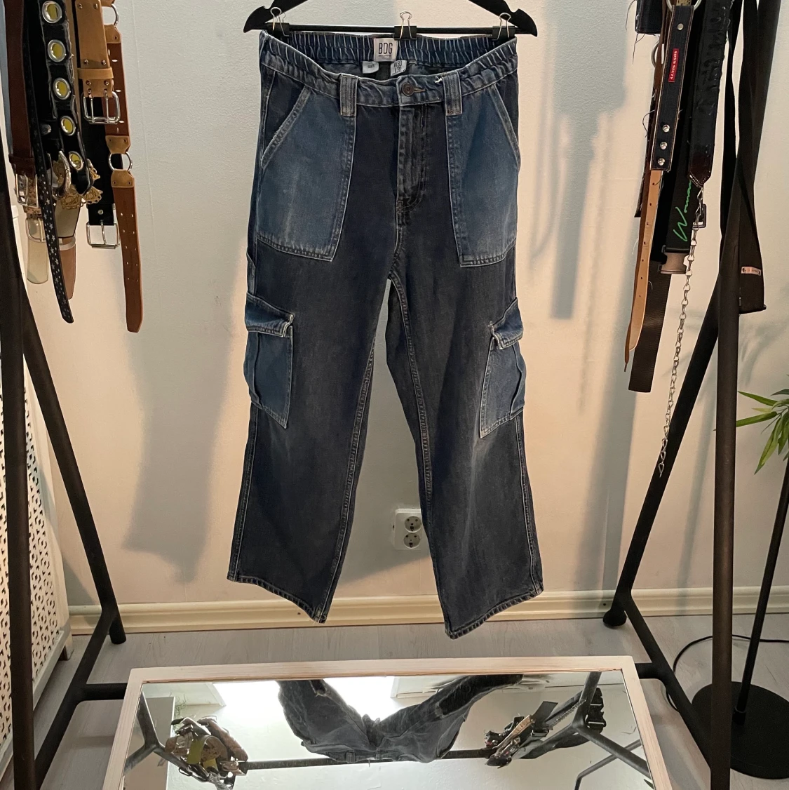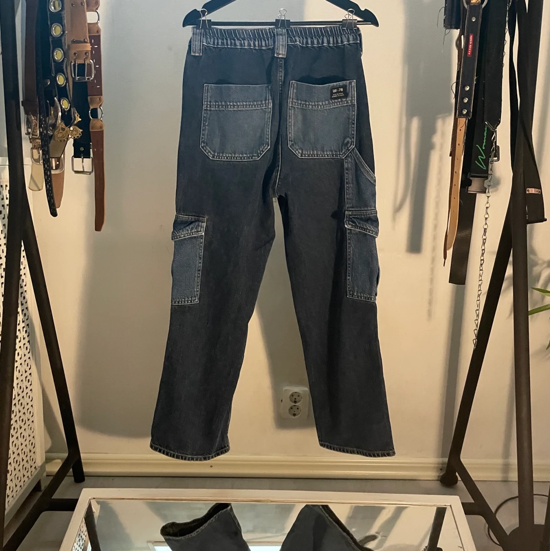 Säljer ett par workwear jeans i mörkblå denim, bra skick, många fickor. Storlek: Herr W 30 L 30.