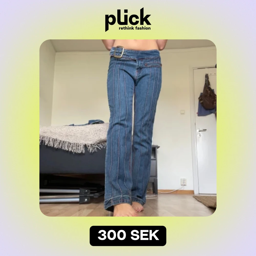 Jättecoola jeans utan bakfickor i fint skick från excellent i strl small🥰 bra längd på mig som är 163