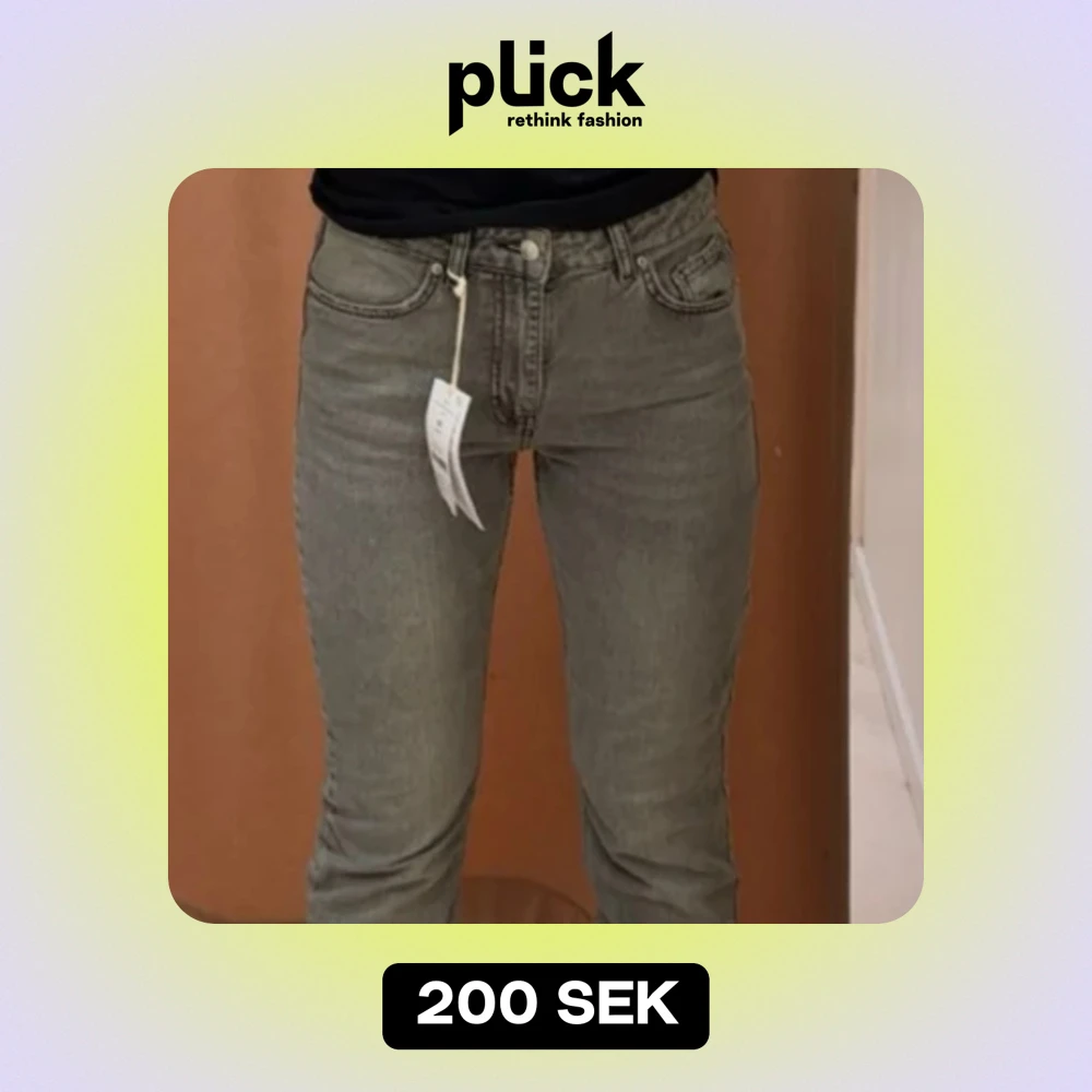 Jättefina jeans från Gina! Säljer för att de har blivit för små. De är flared och midrise med en super fin grå färg! Bilderna blev lite konstiga men men