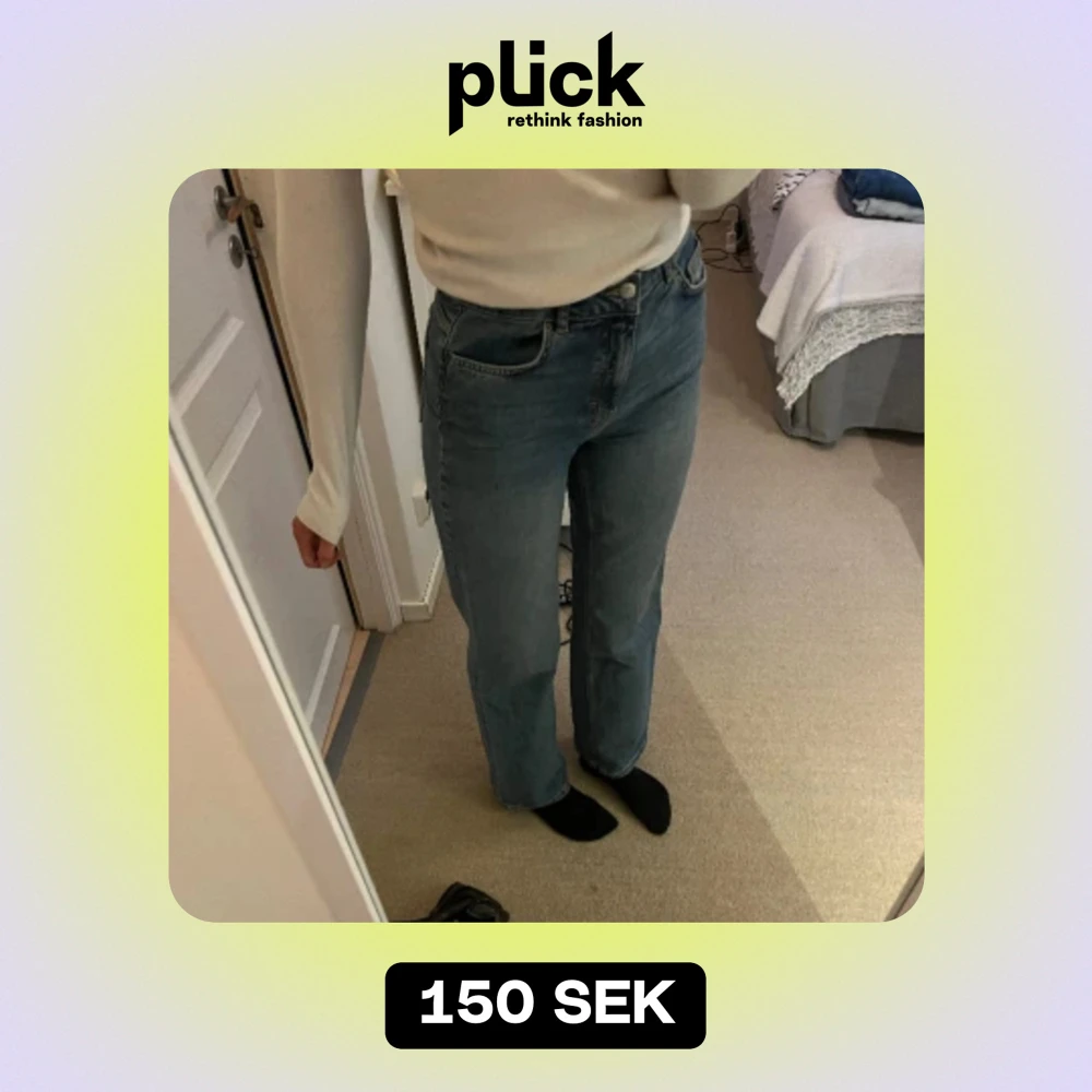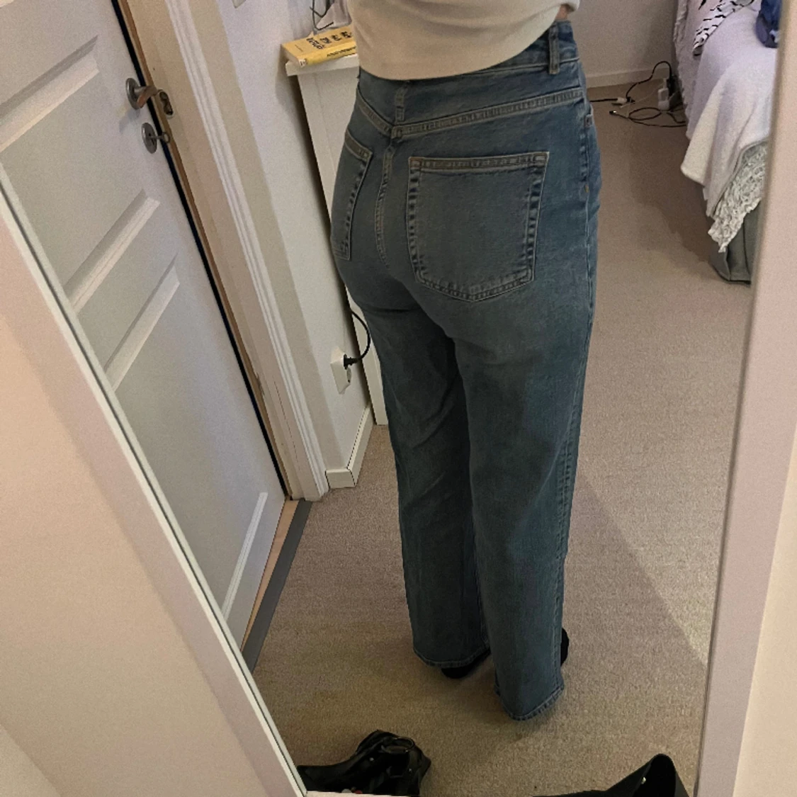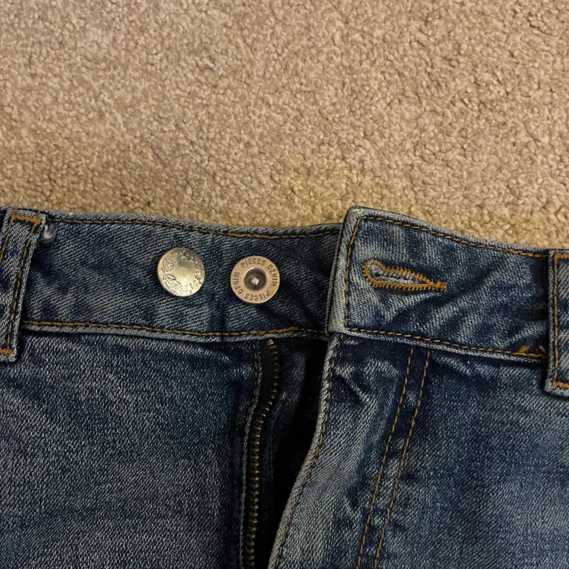 Blåa jeans från Pieces köpta på Vero Moda✨✨ sitter bra på mig som är lång!! Har en extra knapp så de sitter bättre i midjan! Storlek 30/32