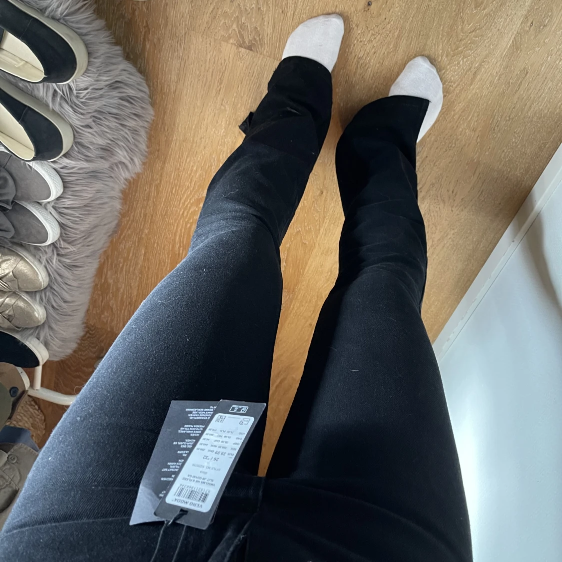 Lågmidjade helt oanvända jeans m slits längst ner. Storlek finns på sista bilden. Jag är 165cm & dom är bra i längden men lite för små i midjan. Nypris: 400kr mitt pris: 150kr 🩵