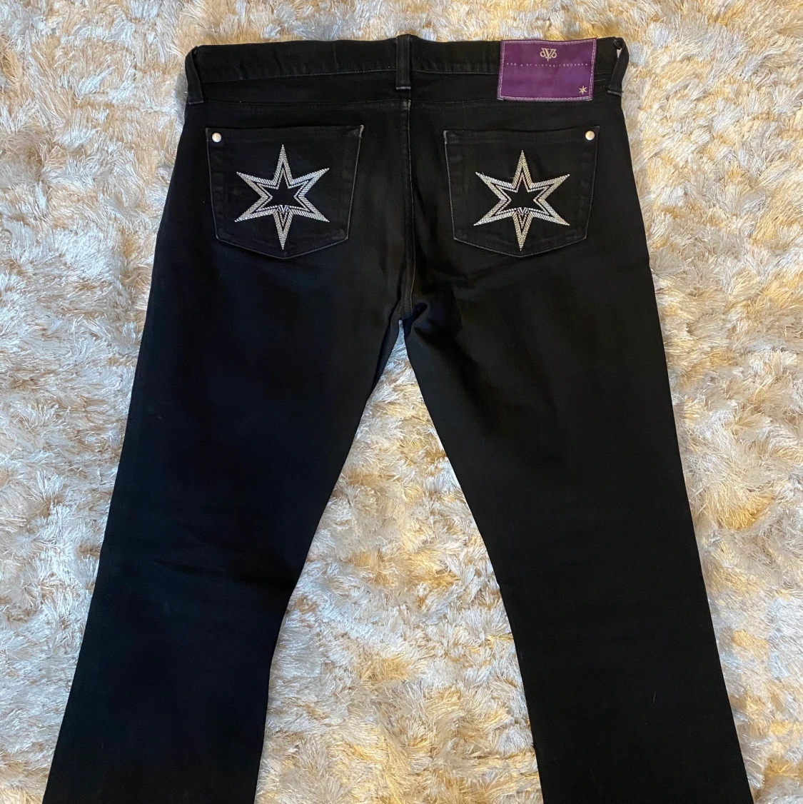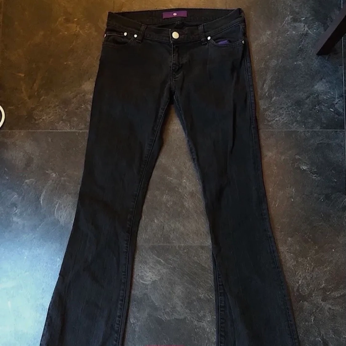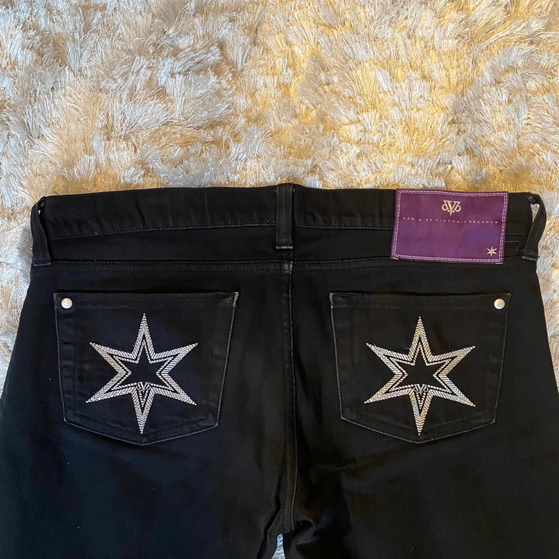 Lågmidjade och utsvängda Victoria Beckham jeans som jag köpte här på Plick, aldrig använt de själv då jag tyckte att de inte riktigt passade på mig. Står att det är storlek 28 i midjan och 34 i längd💗