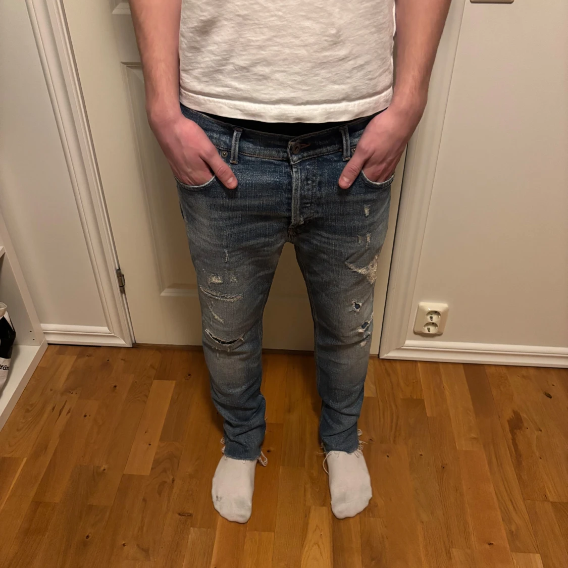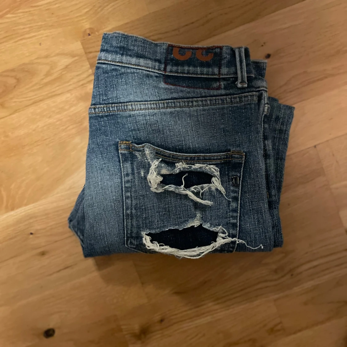 Tja, säljer nu dessa tvär feta Dondup jeansen med sjukt snygga slitningar. Storlek 32 men passar 30-31. Grymt skick utan några defekter alls. Skriv vid minsta lilla fundering! Priset är ej hugget i stenen.