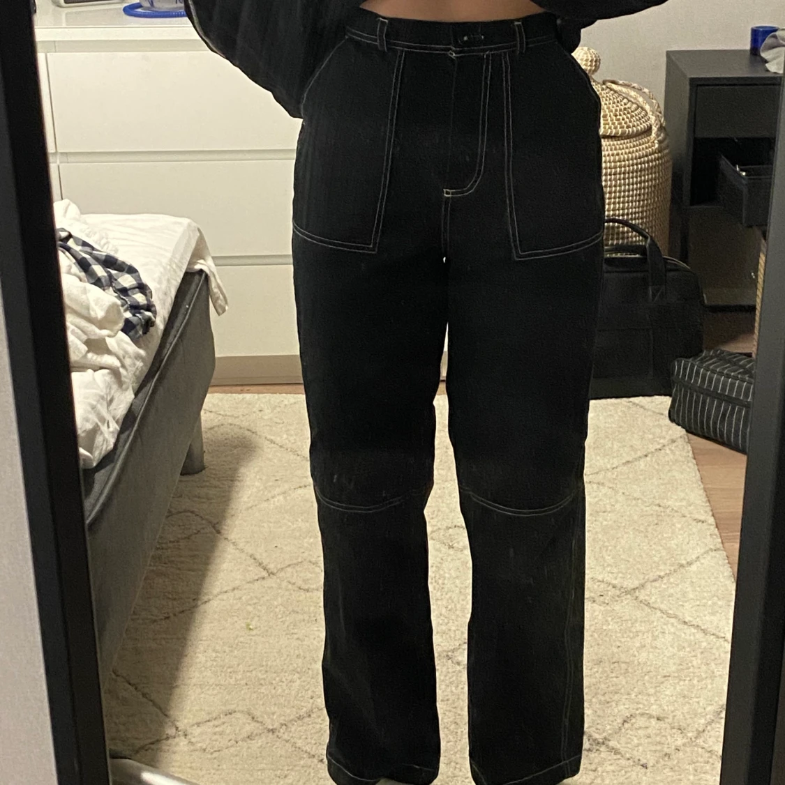 svarta jeans med vita sömmar från junkyard! köpare står för frakt 💞