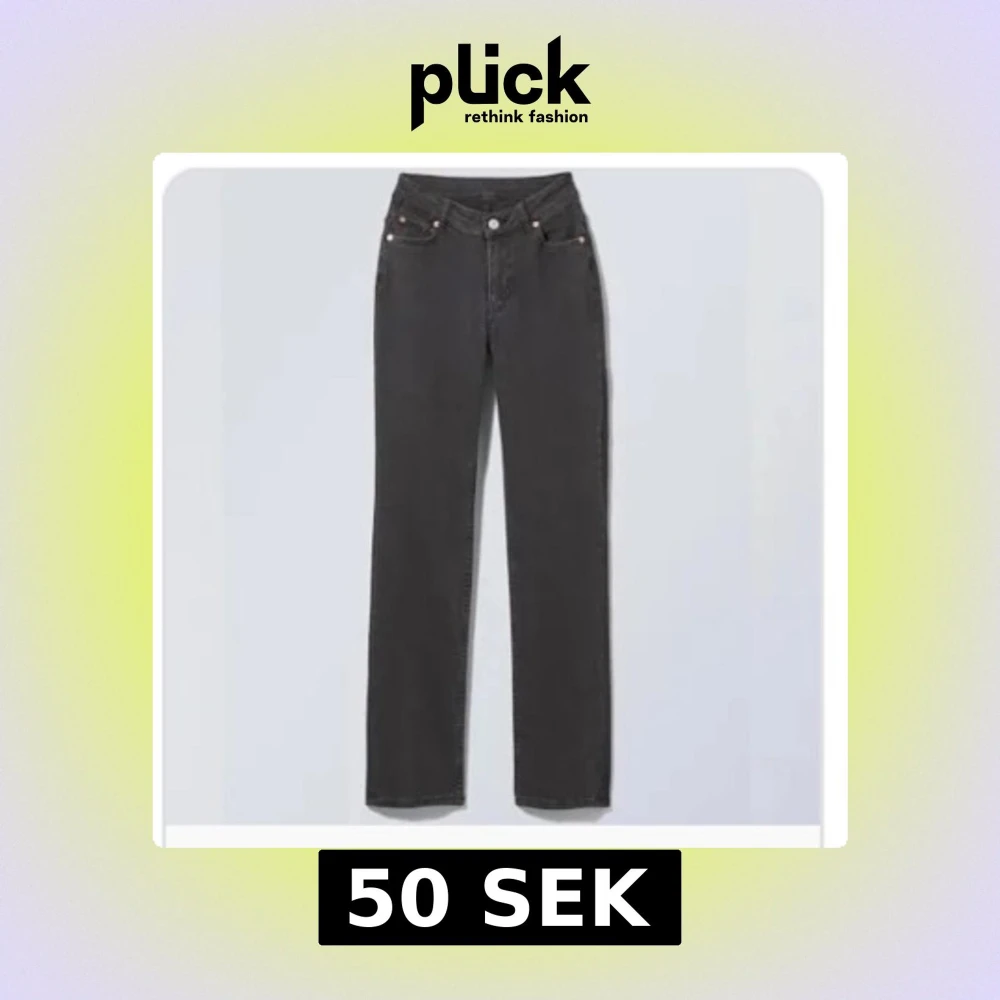 Snygga svarta raka jeans från weekday. Jeansen har midwaist midja. Tyvärr försmå för mig❤️