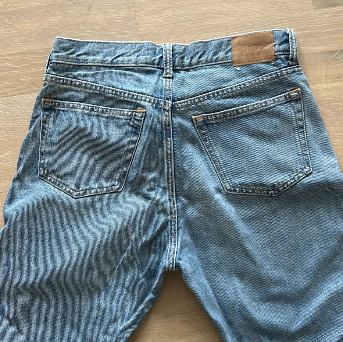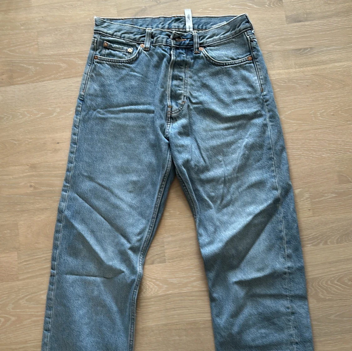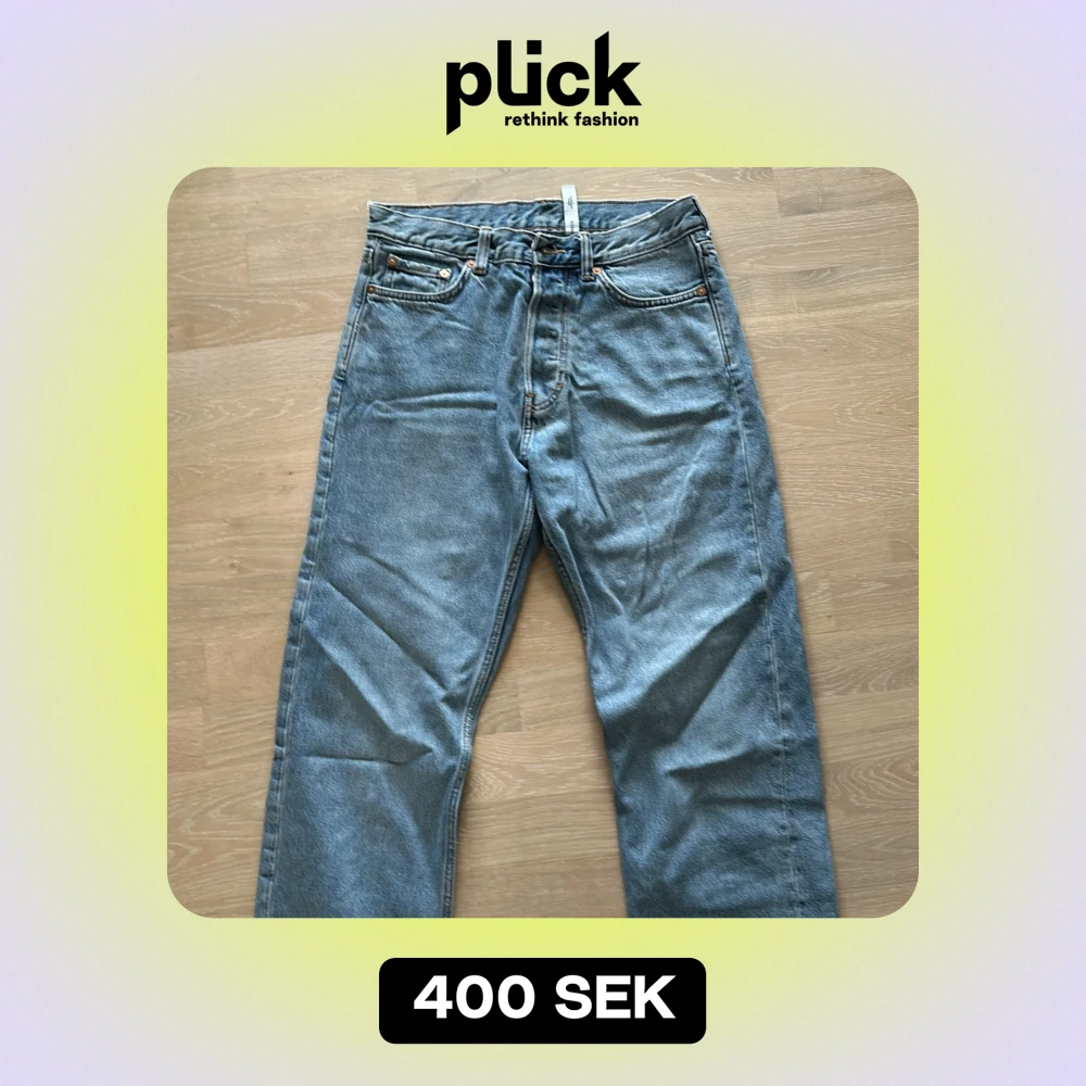 Säljer ett par Weekday blå jeans i bra skick. De har lätt baggy passform och är perfekta. Model Space, strlk 27/32