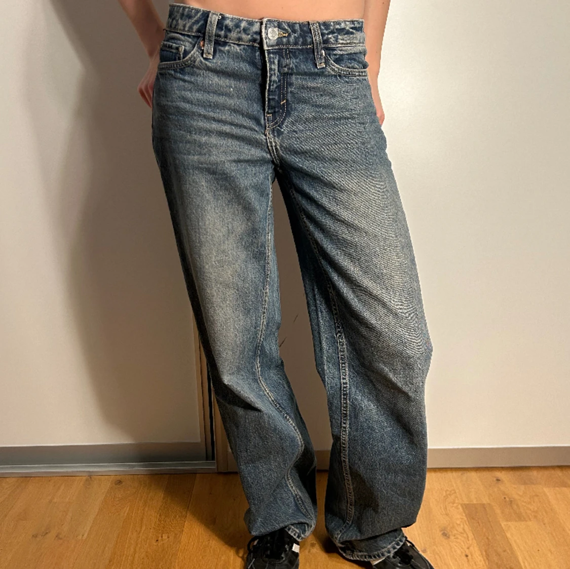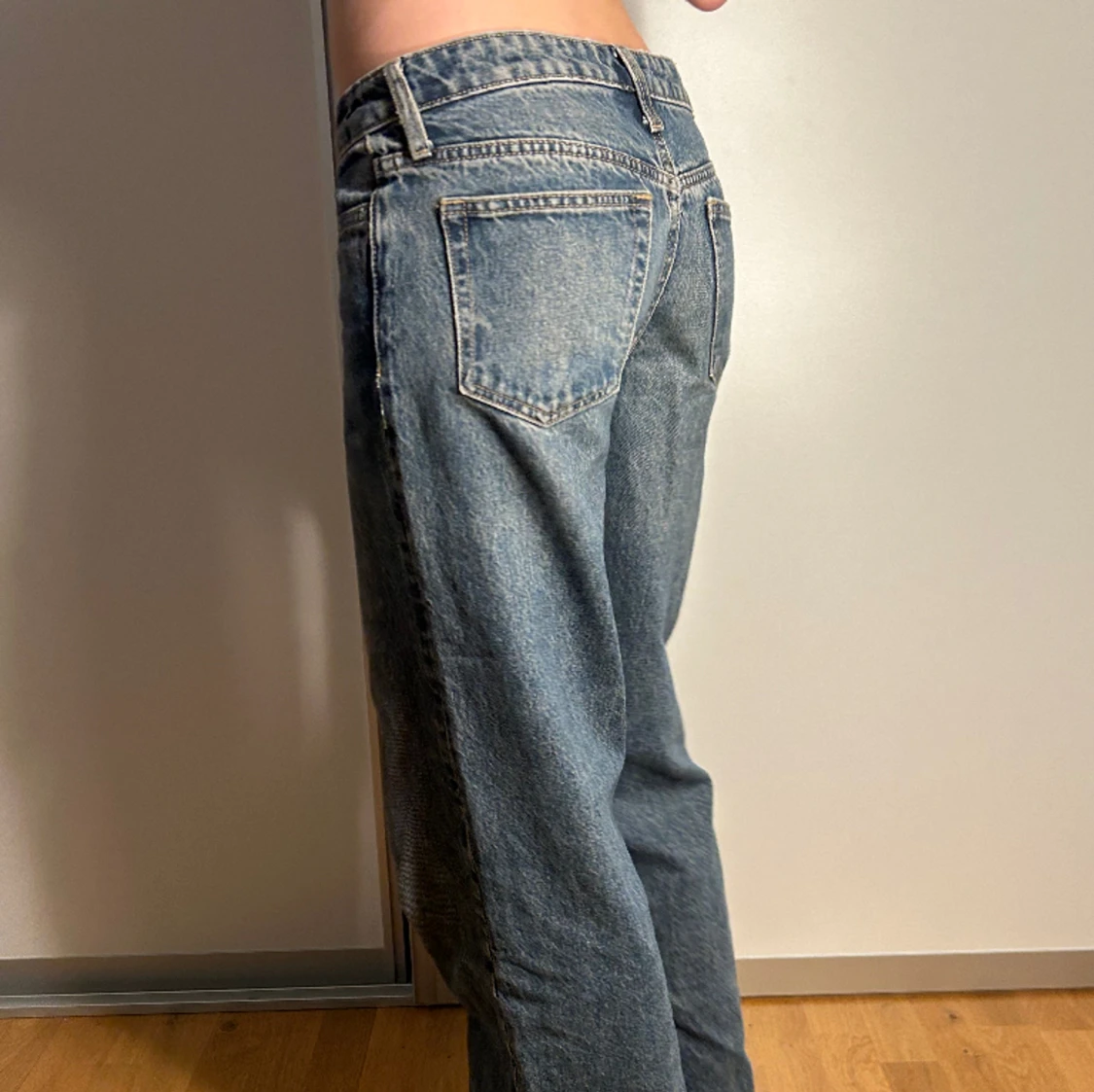 Mörkblåa lowrise jeans från weekday i bra skick! Midjemått: 75 cm. Innerbenslängd: 80cm