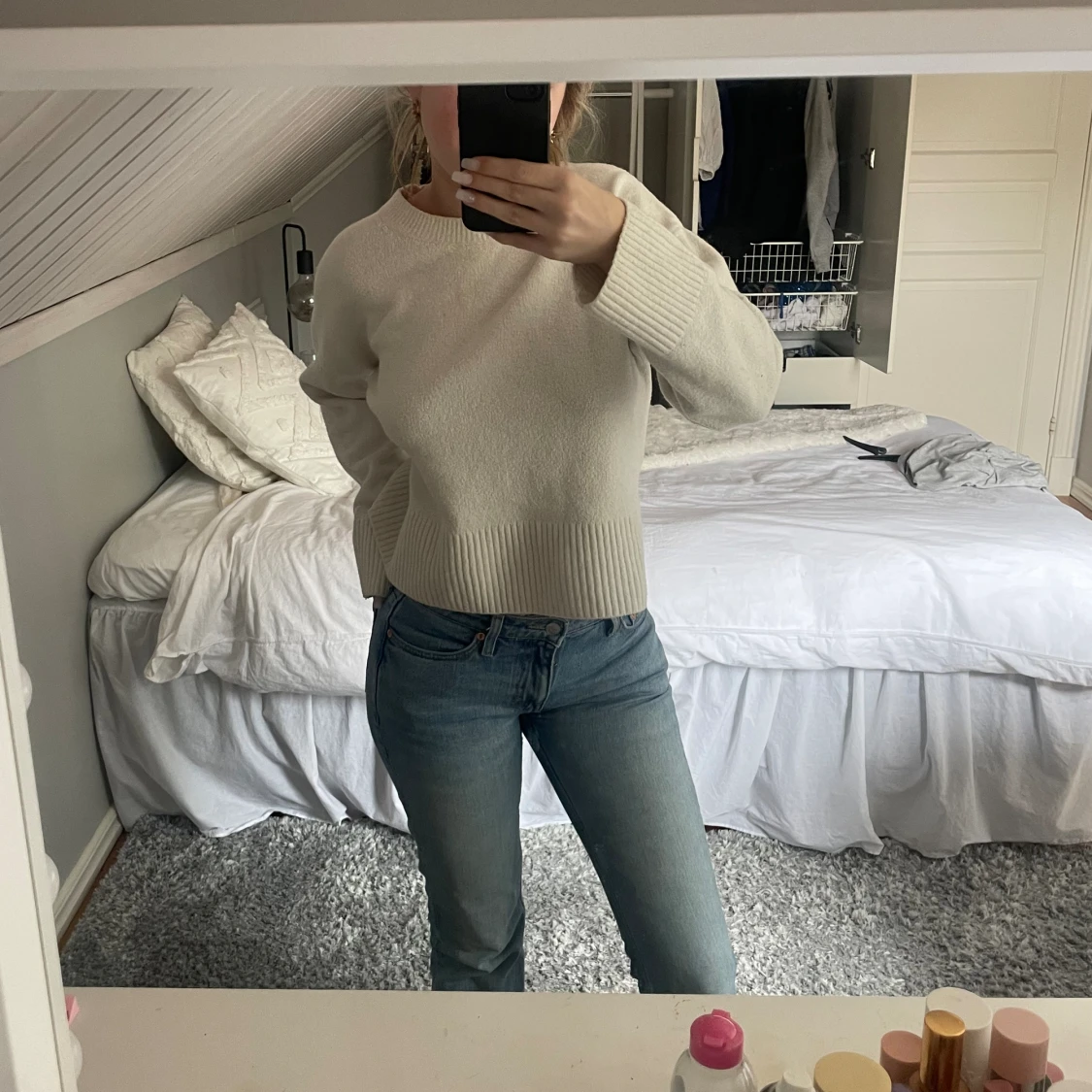 Säljer dessa fina ljusblåa jeansen från weekday, köpt förra året men inte så mycket använda så fint skick!💕köpta för runt 500