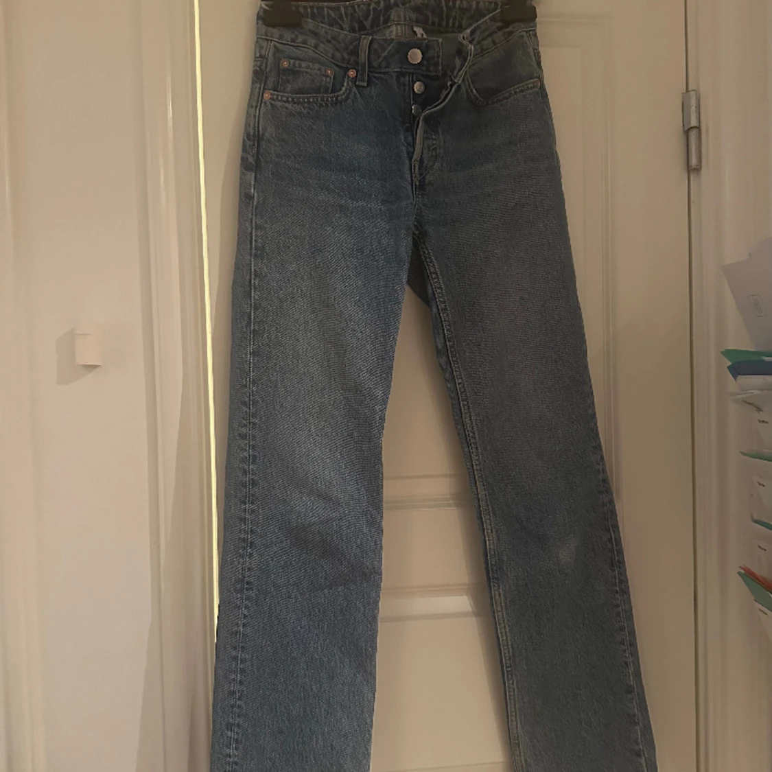 Mid waist Mörkblåa jeans från weekday. strl 25/32. Skriv i dm om ni vill köpa eller minska pris💕