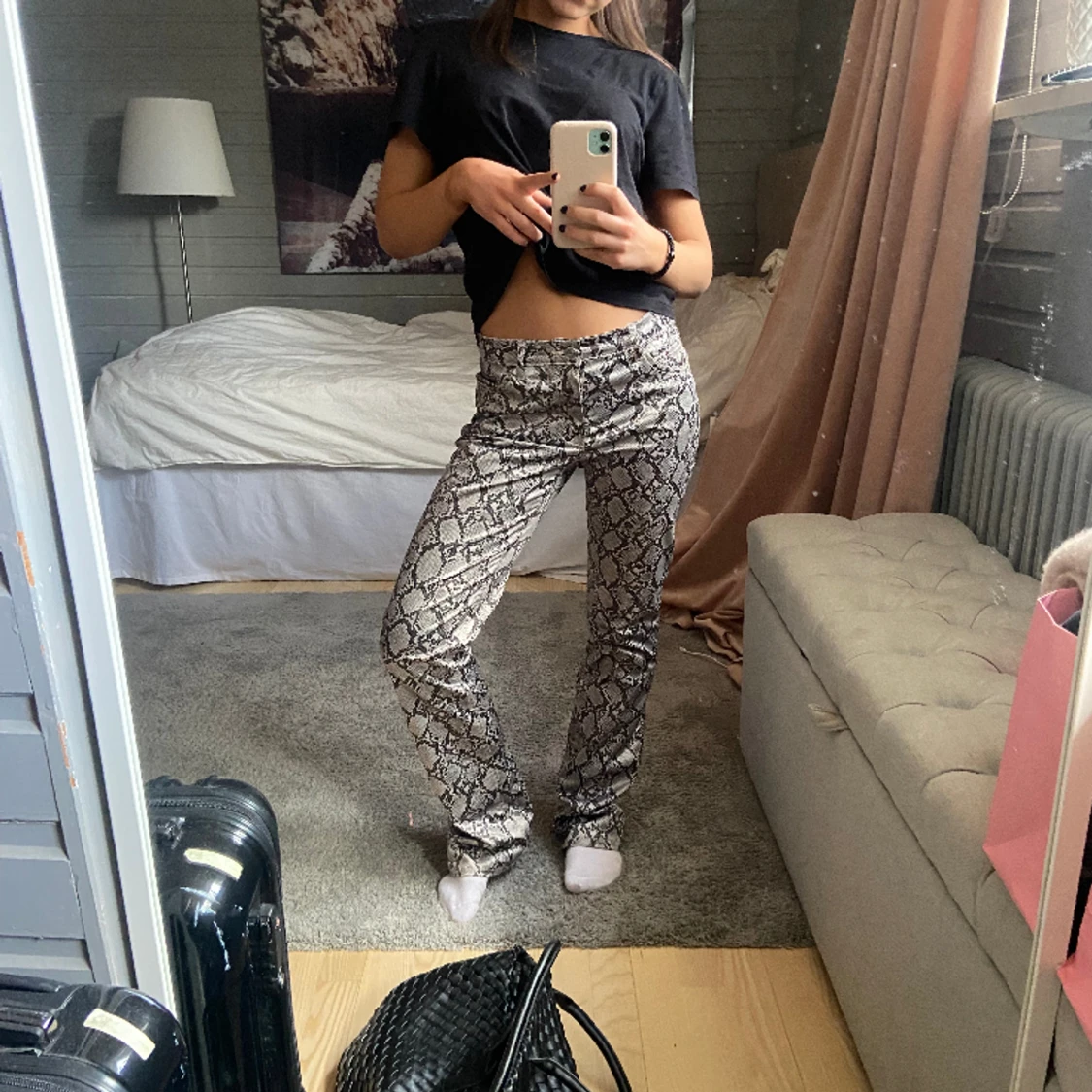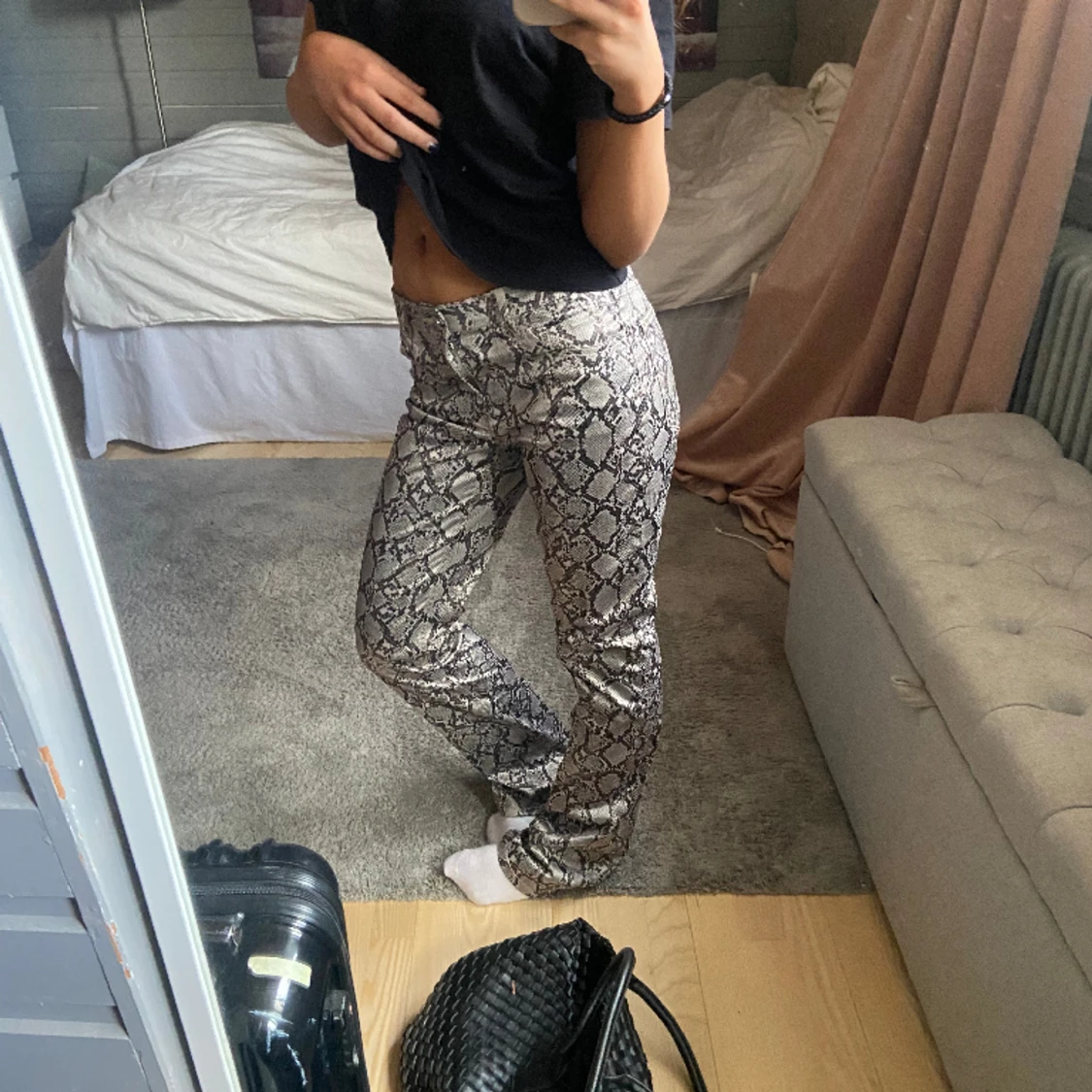 Intressekoll på mina ormskinns byxor från weekday. Köpte för 900kr och har knappt använt dem! Kom med ett rimligt pris!