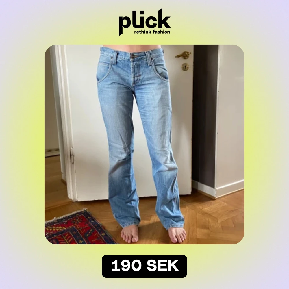Svinsnygga lågmidjade jeans från Wrangler som blivit lite små för mig. Midja ca 82 cm, innerbenslängd 83 cm. Personen på första två bilderna är 168 cm
